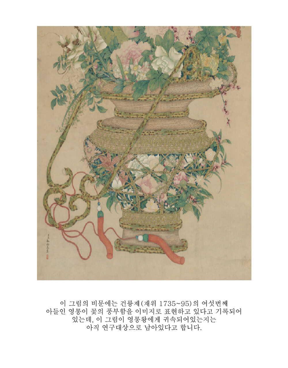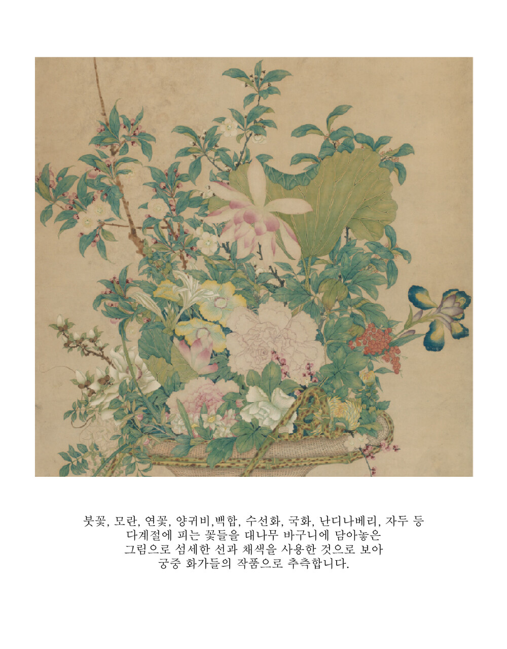 사계절의 꽃 바구니[청나라. 시카고미술관] 공필화 민화도안 봄상회 그림본