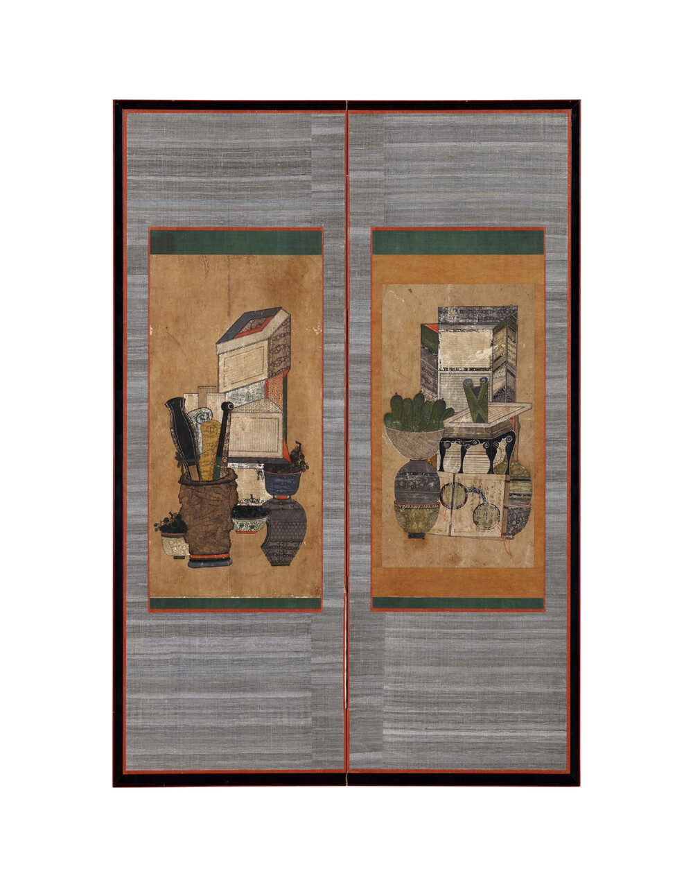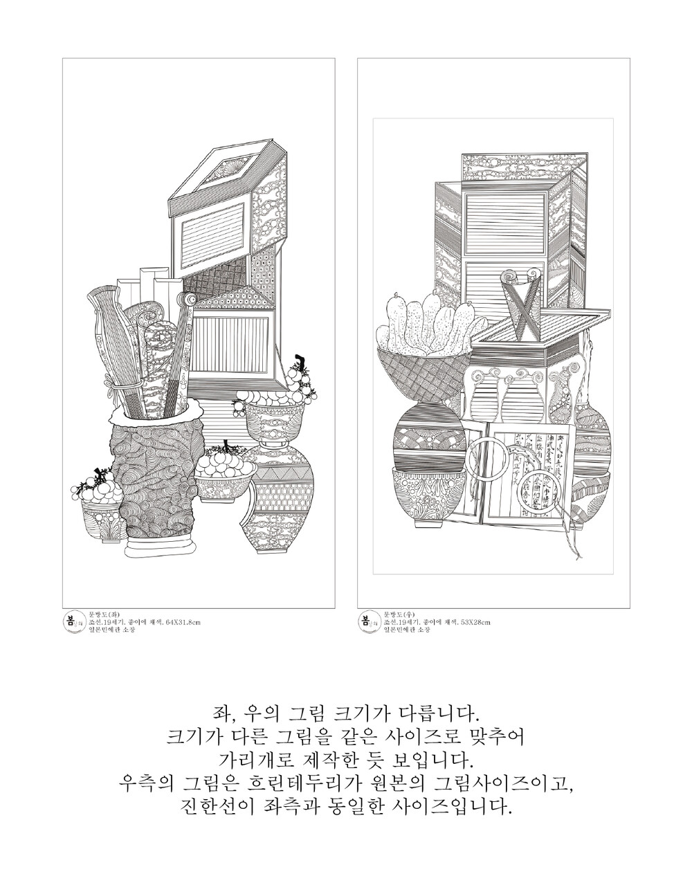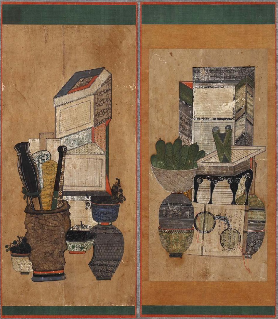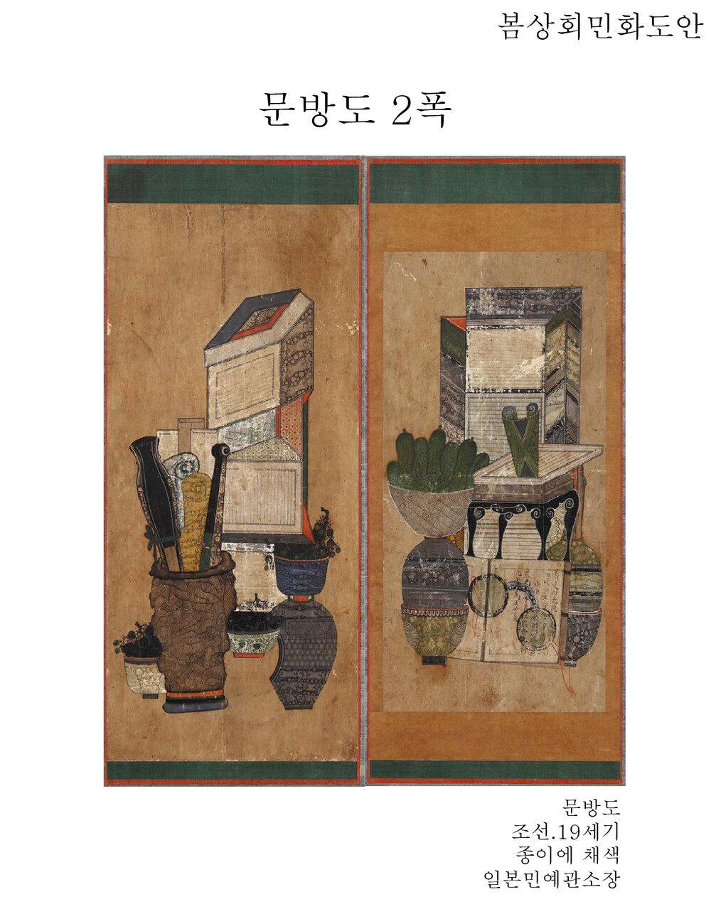 문방도 2폭 [일본민예관소장품] 가리개 민화 도안