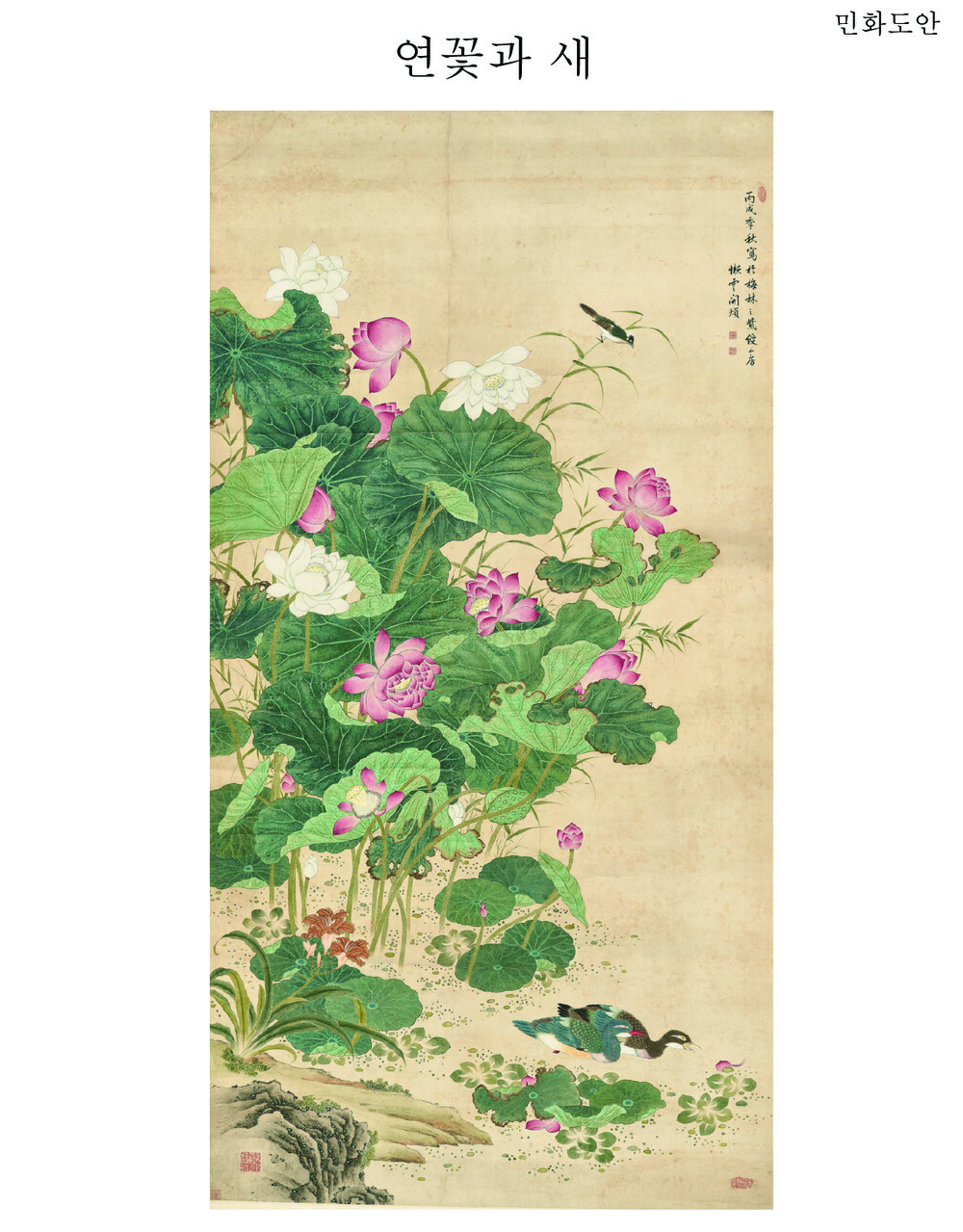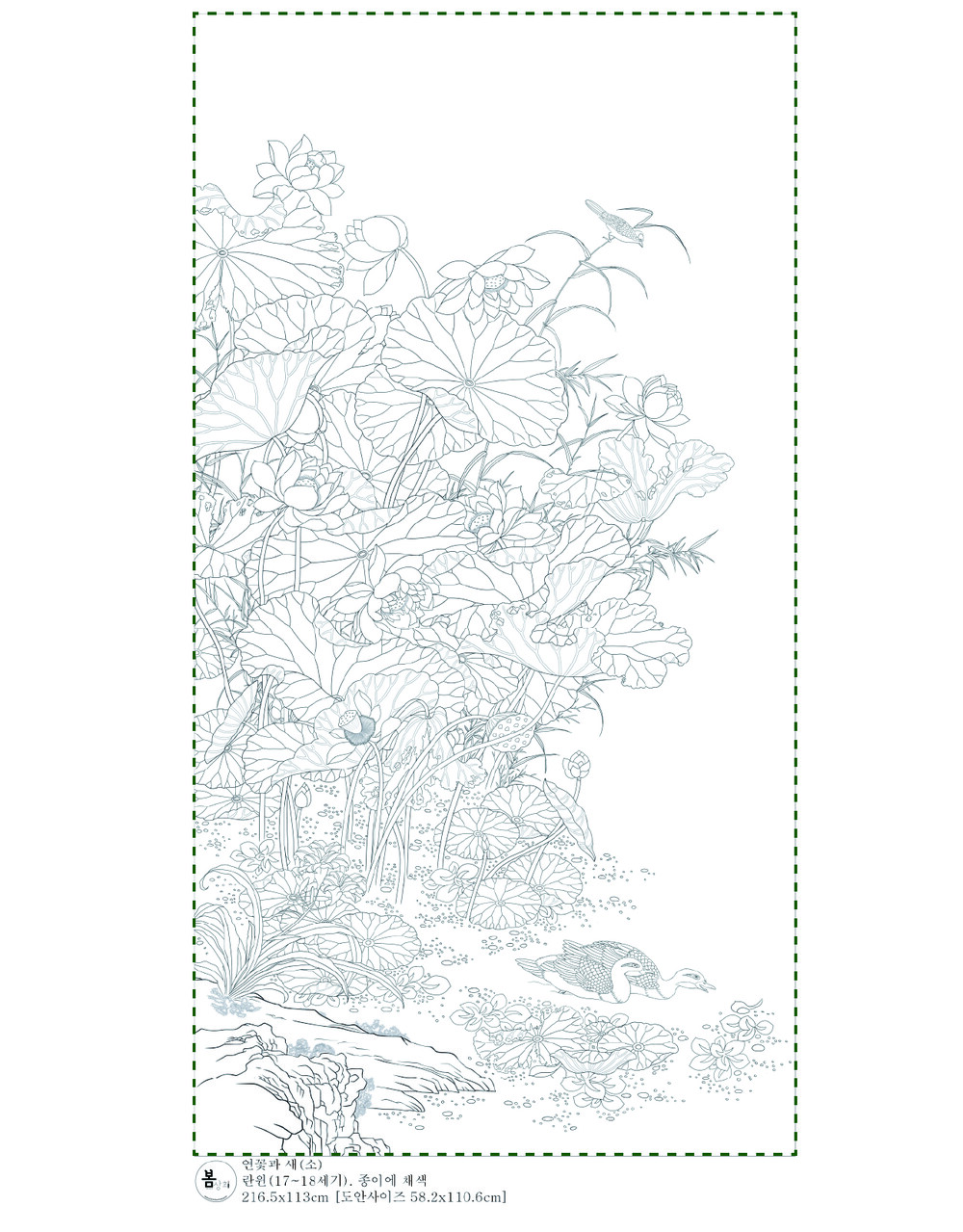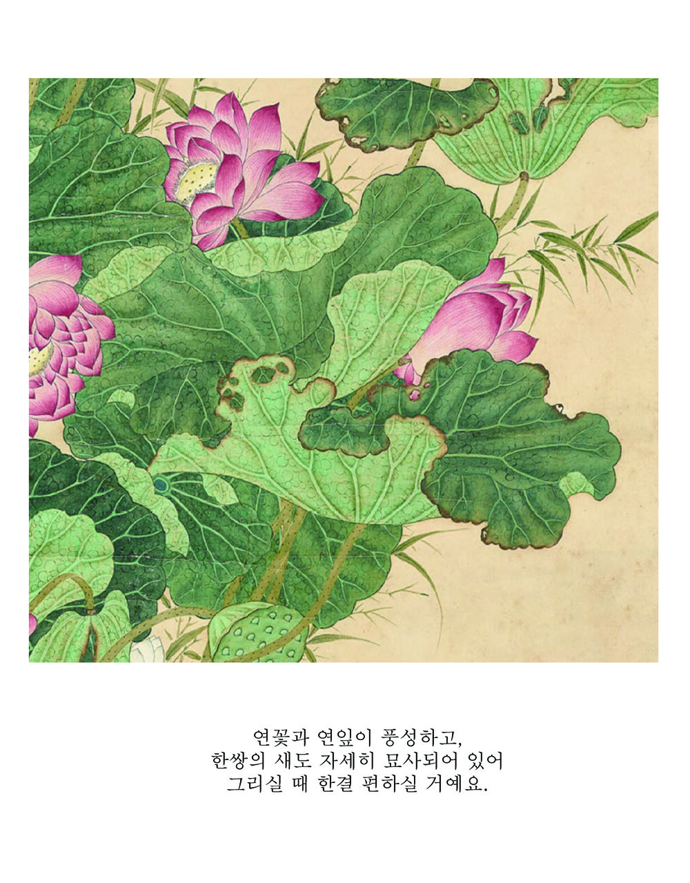 란윈의 연꽃과 새 연화도 민화 도안 봄상회