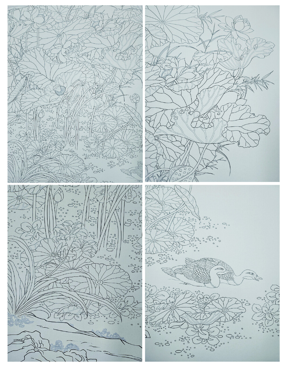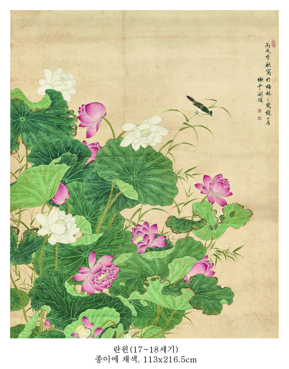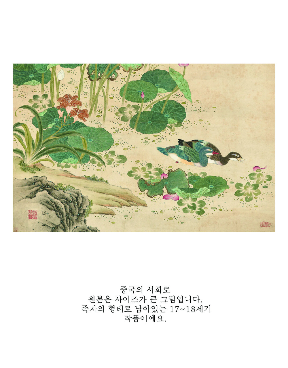 란윈의 연꽃과 새 연화도 민화 도안 봄상회