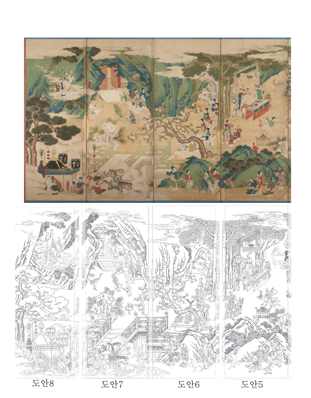 요지연도 8폭병풍 민화도안 병풍형