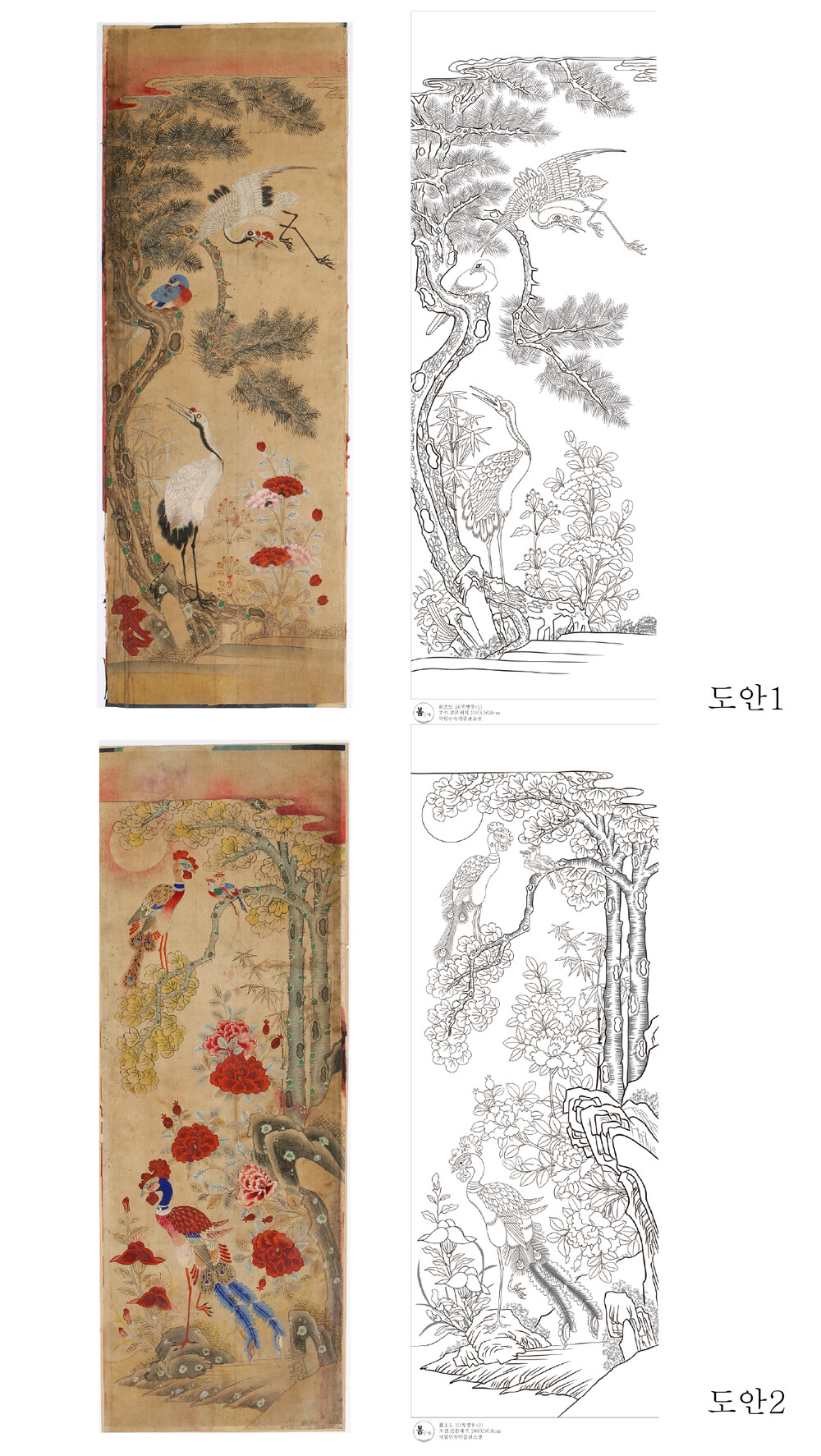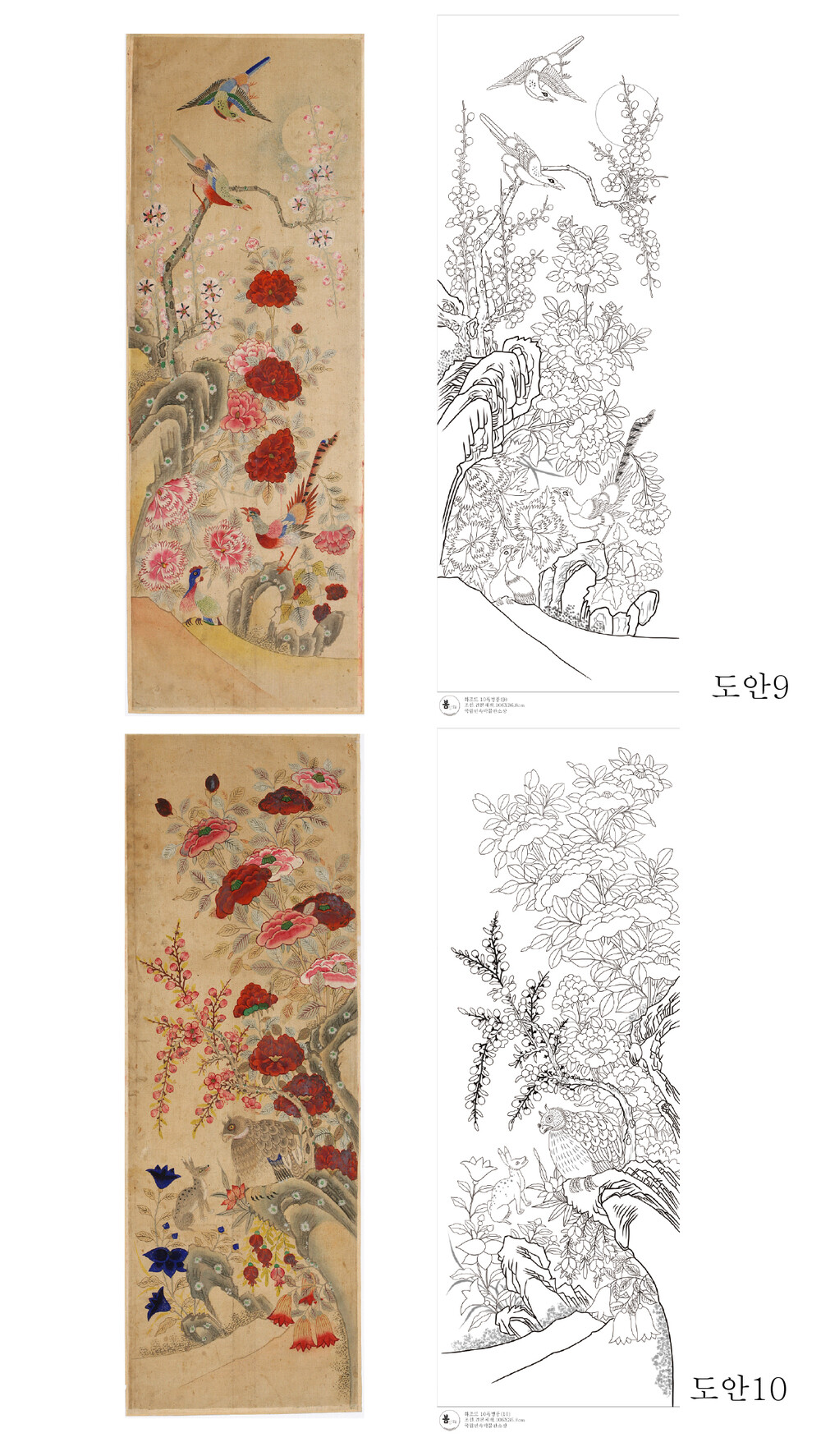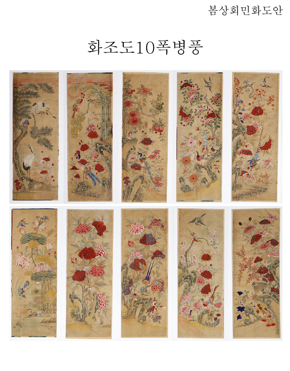 화조도 10폭 병풍 민화 도안 알록달록 화조도 봄상회 그림본