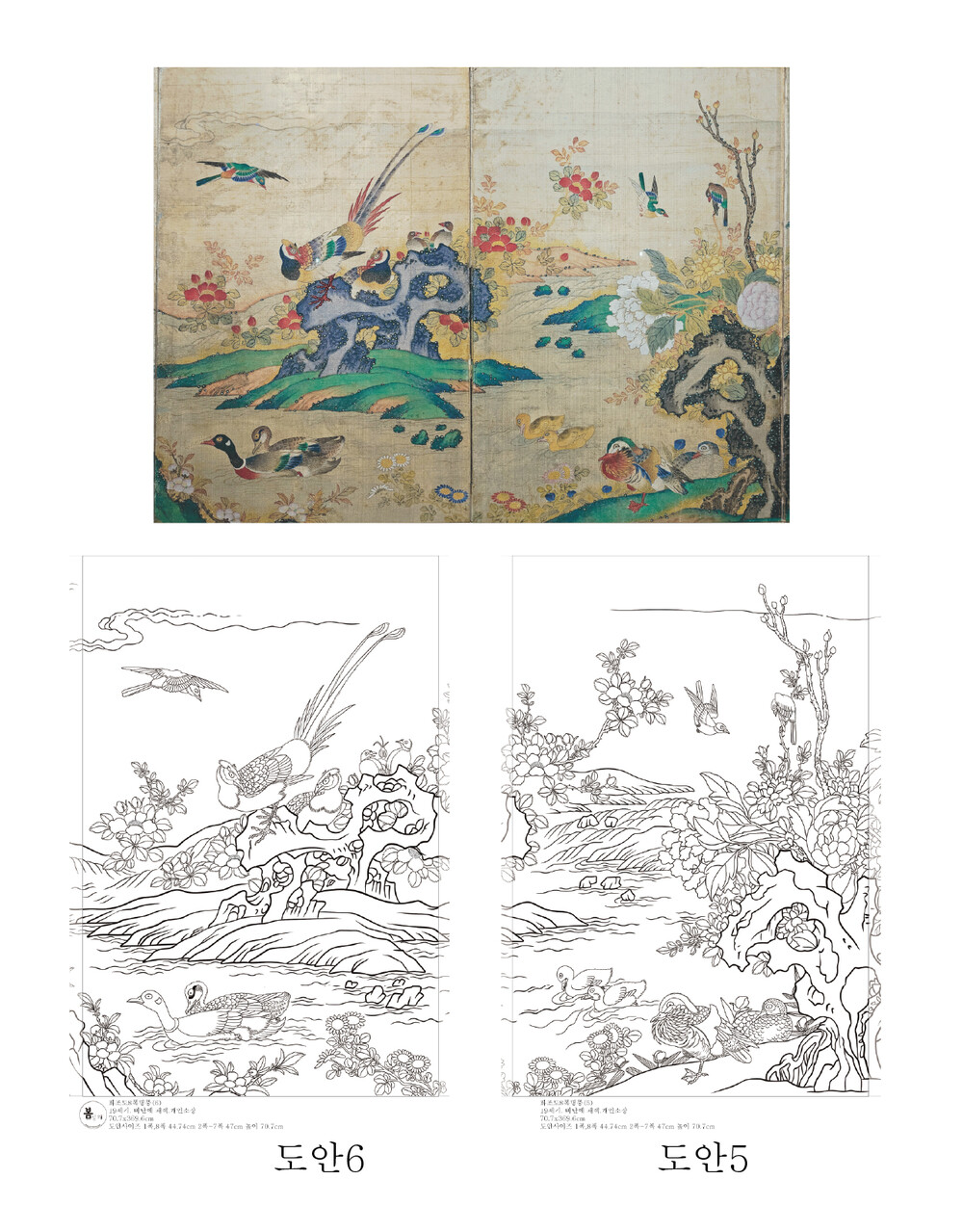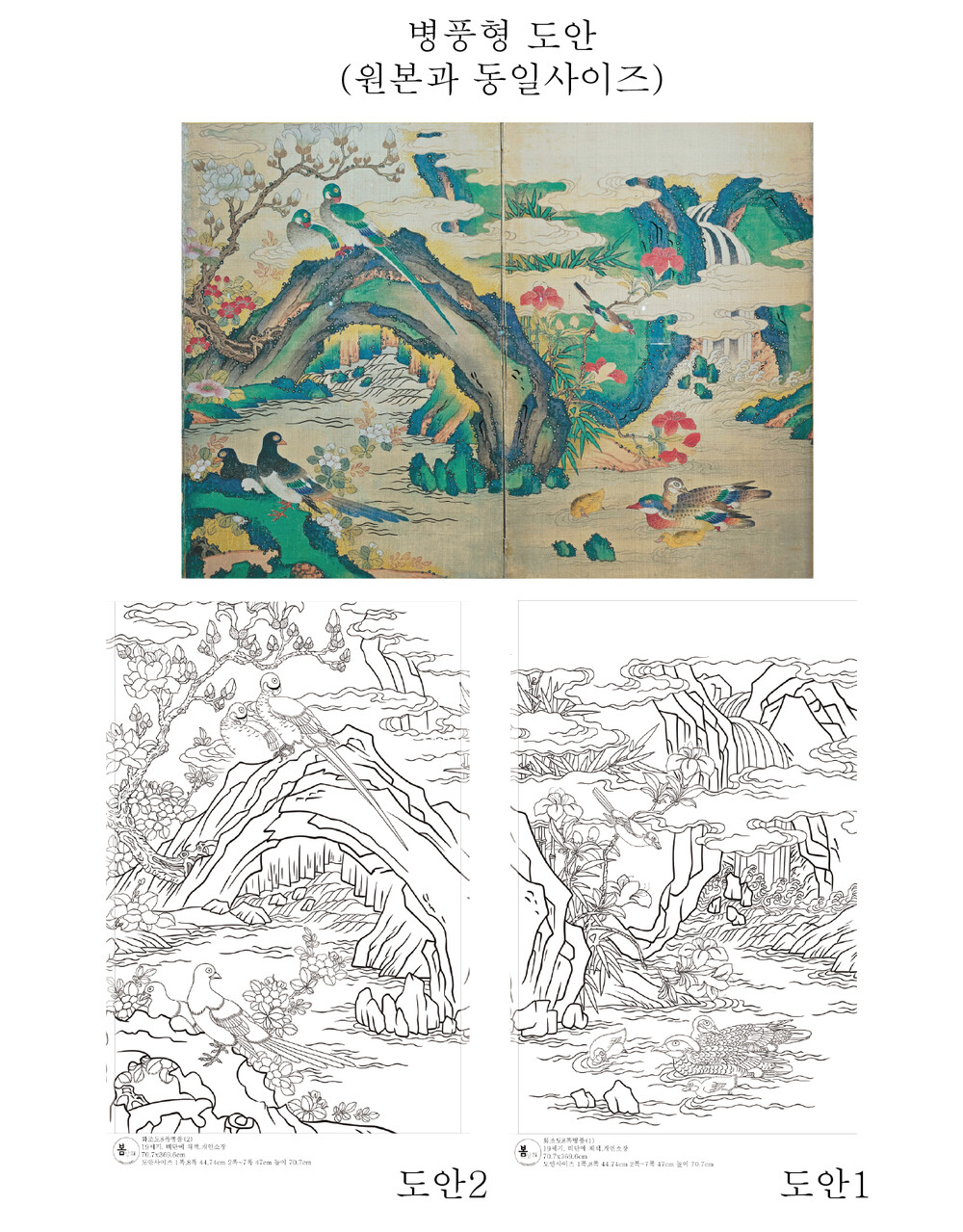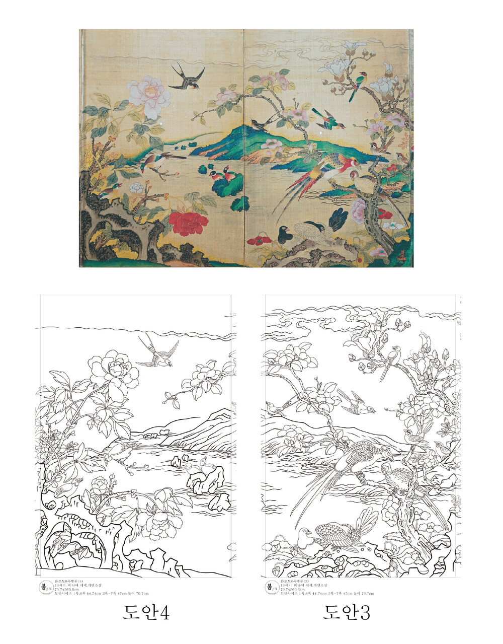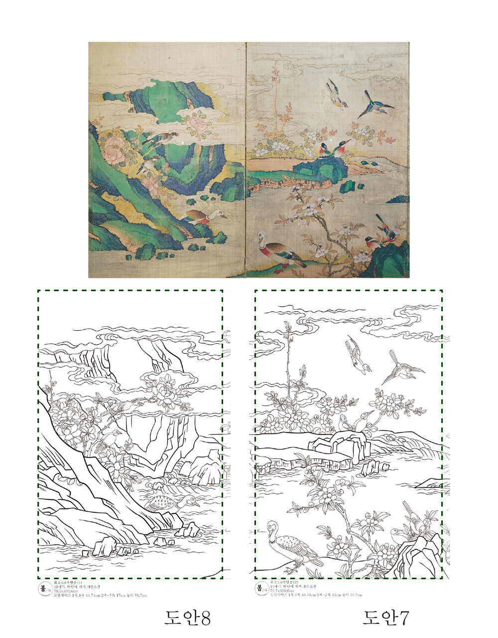 화조도 8폭병풍 병풍형 민화 도안[궁중장식화풍]봄상회 그림본