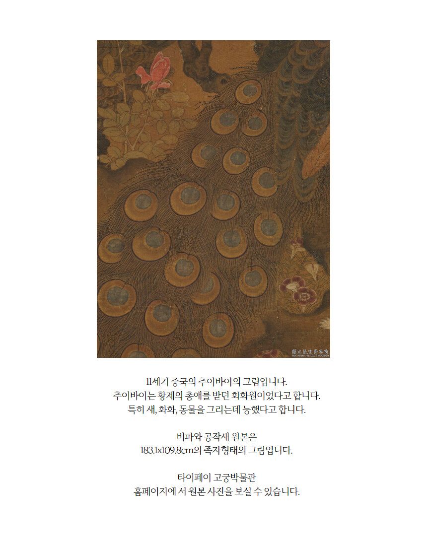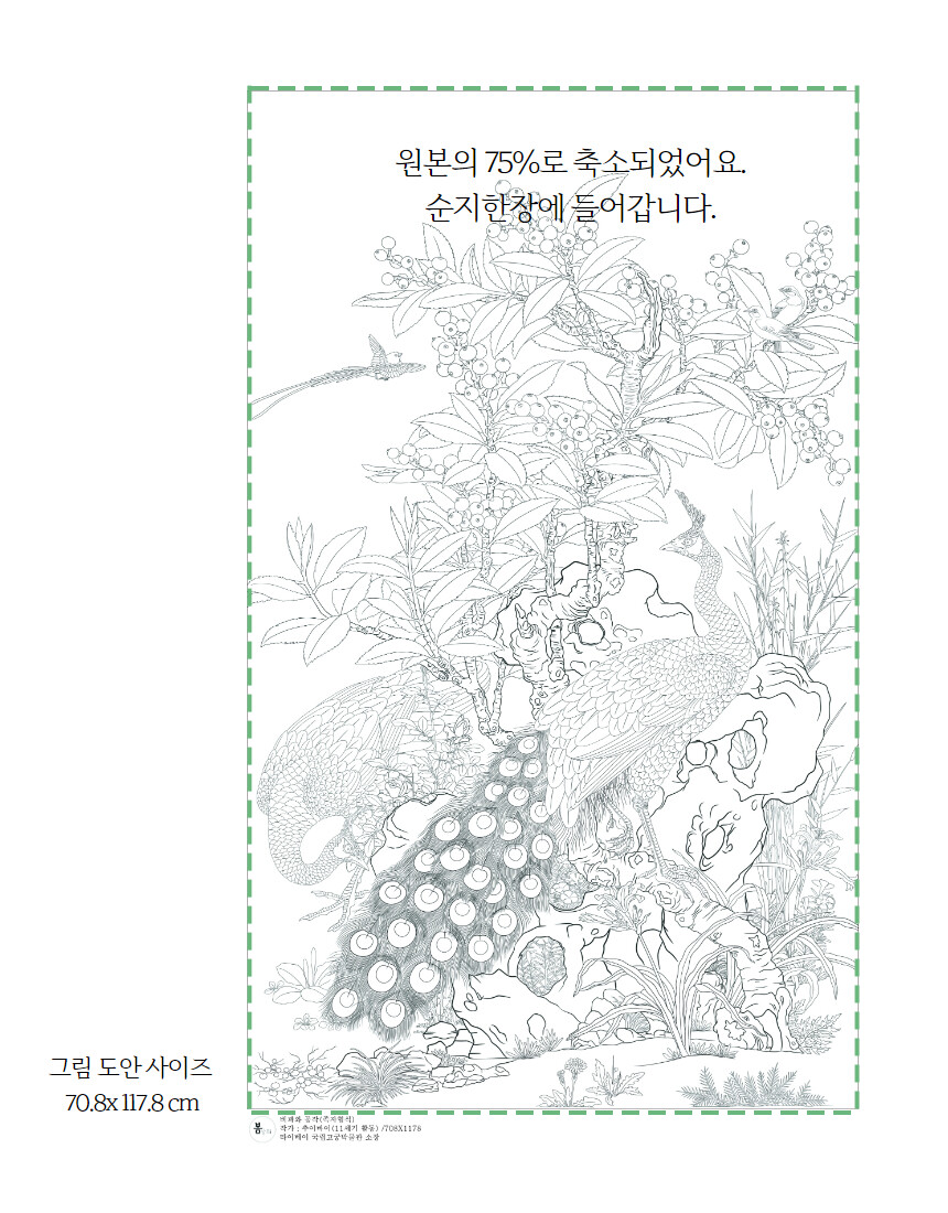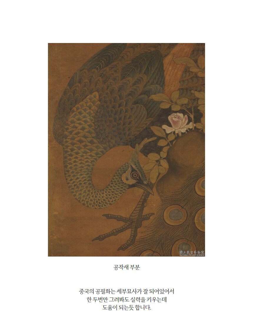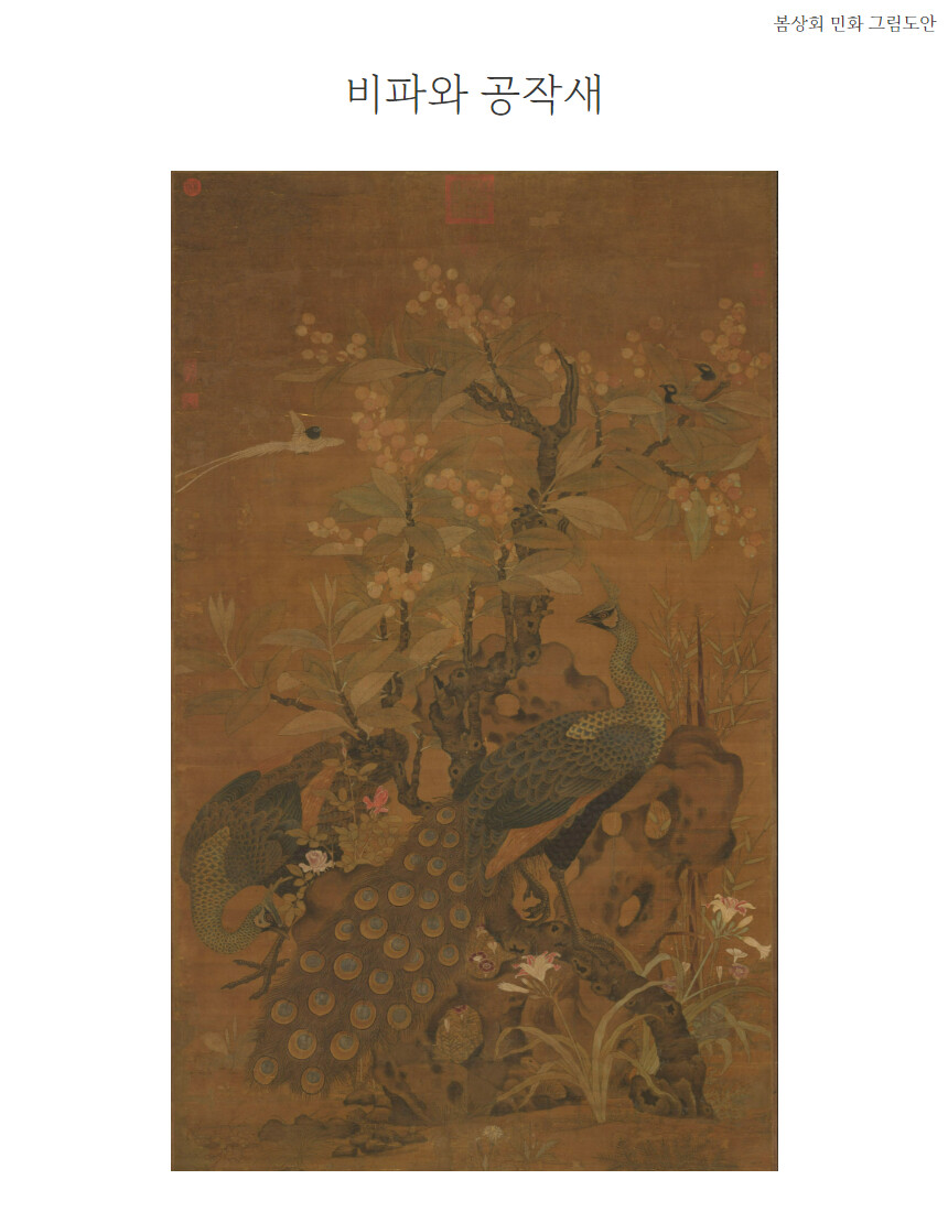 민화 도안 비파와 공작새 공필화 그림본