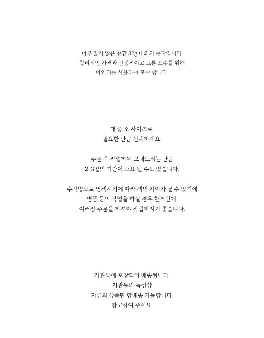 민화용 포수 순지 대형 중형 소형 사이즈