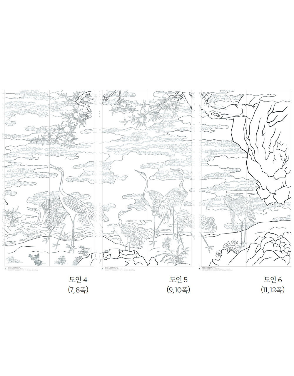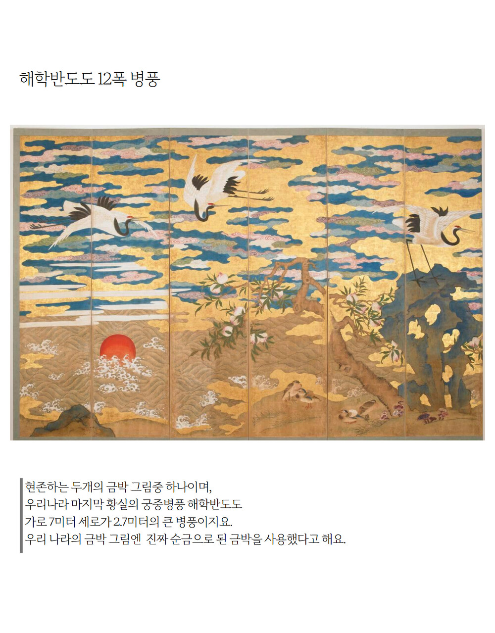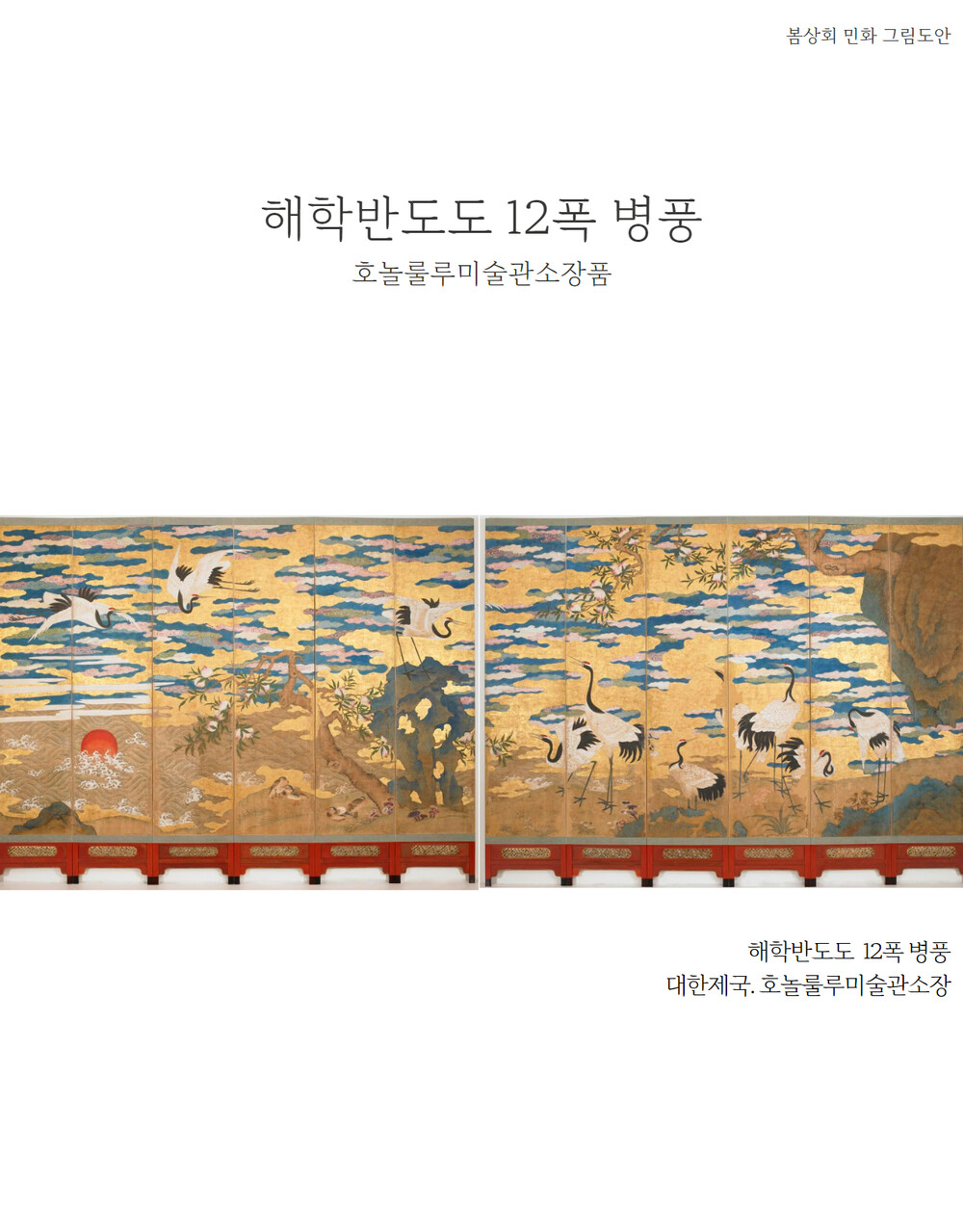 해학반도도 12폭 병풍 도안 호놀룰루미술관 금박해학반도도 민화 그림본