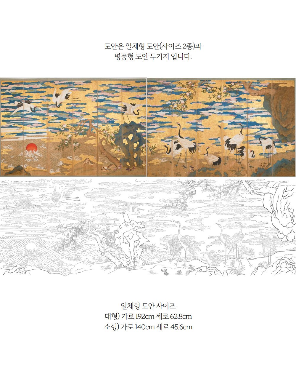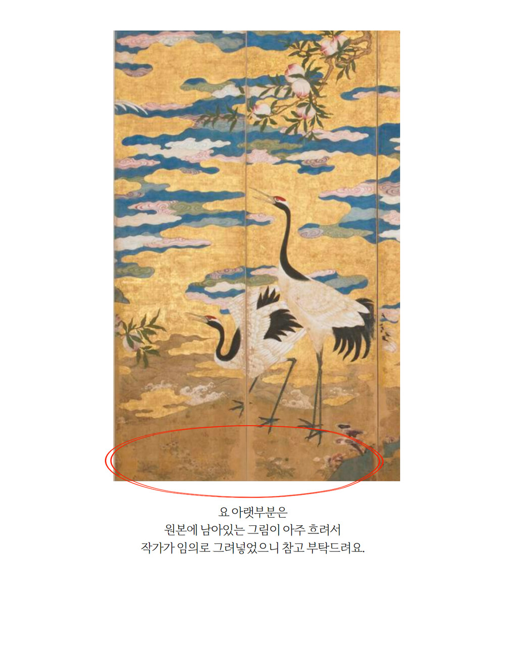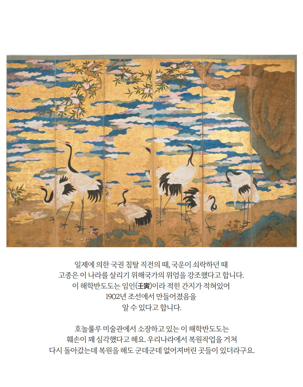 해학반도도 12폭 병풍 도안 호놀룰루미술관 금박해학반도도 민화 그림본