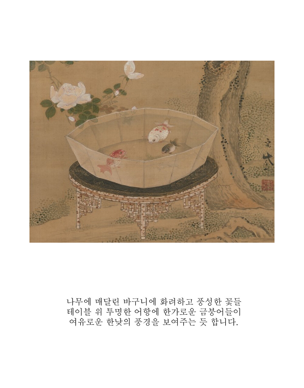 꽃과 금붕어 민화 도안 화훼도 봄상회 그림본