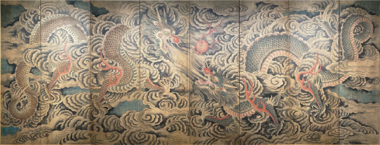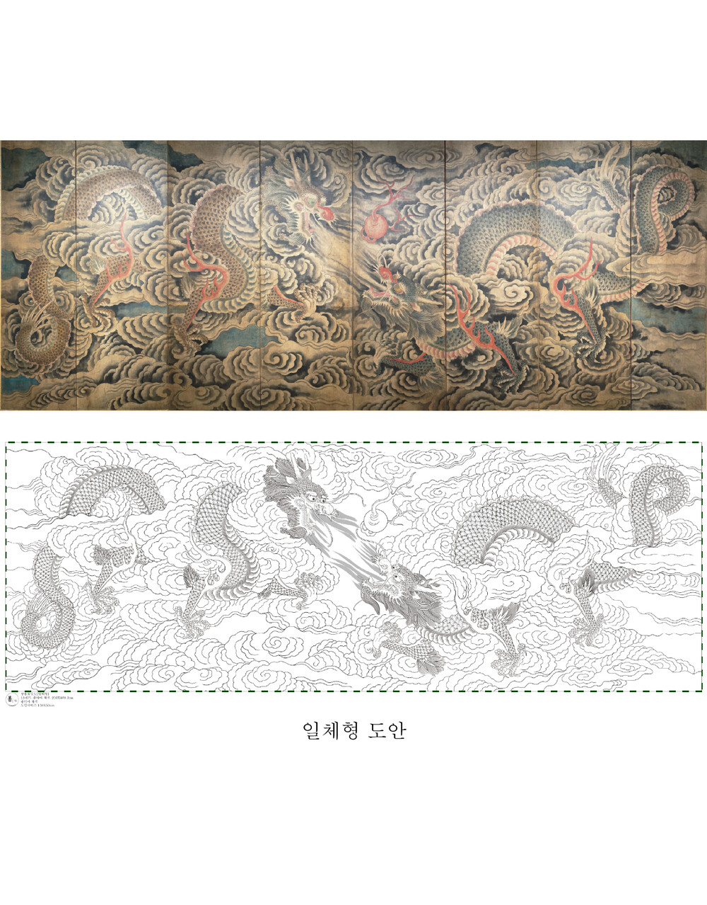쌍룡희주도 8폭병풍 [일체형]도안 운룡도 봄상회 그림본
