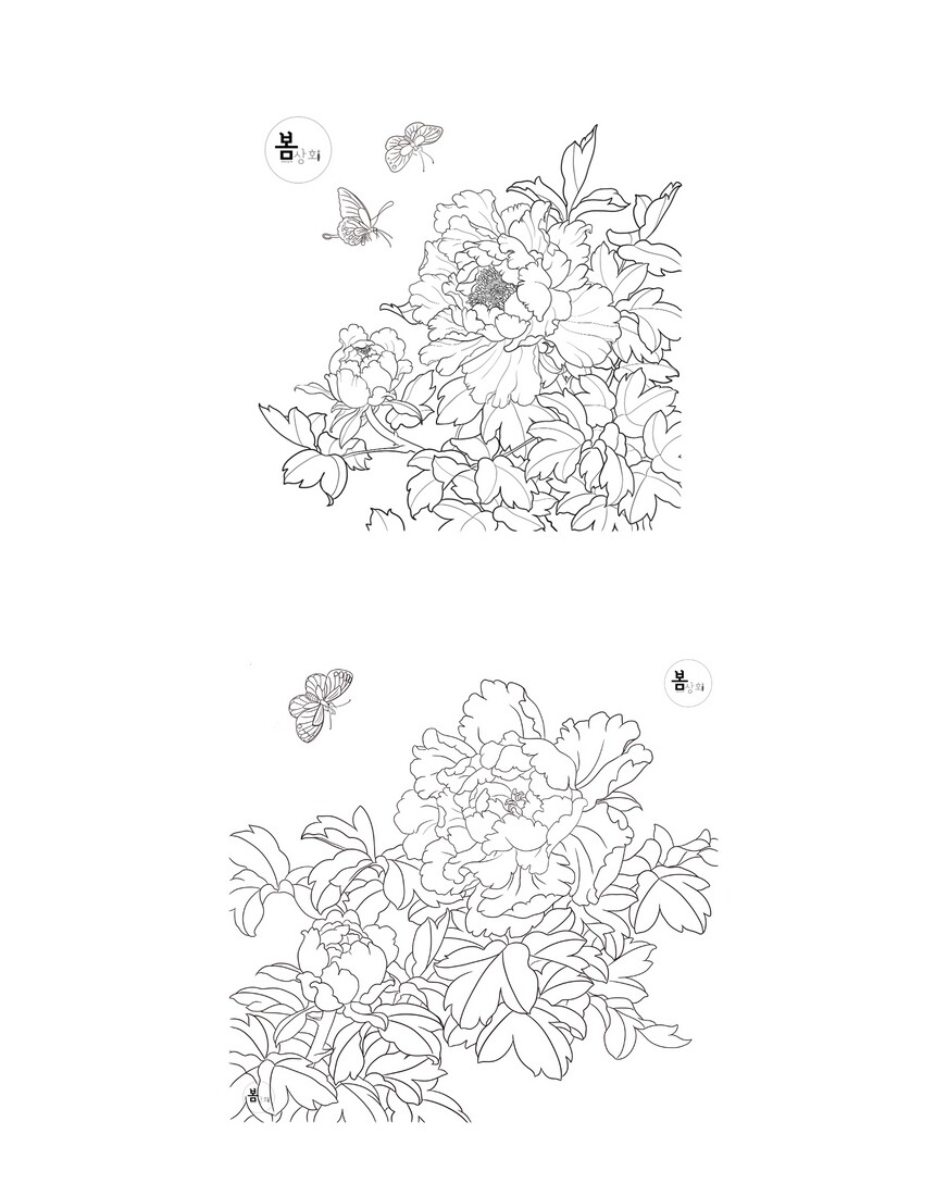 민화 그리기 그림 도안 공필화 목단