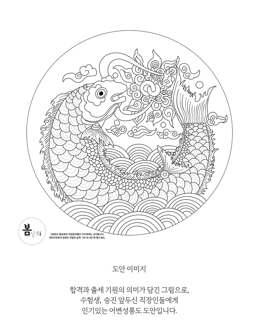 민화그리기 그림 도안 어변성룡도 중형사이즈