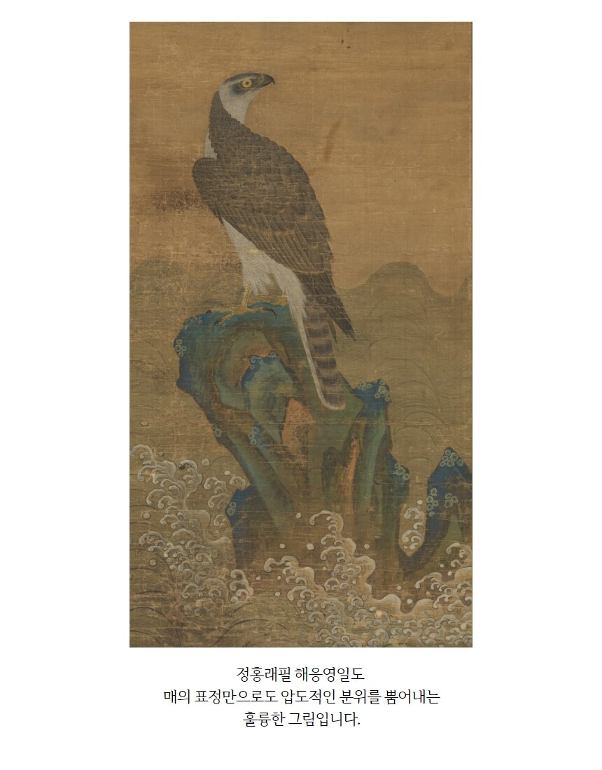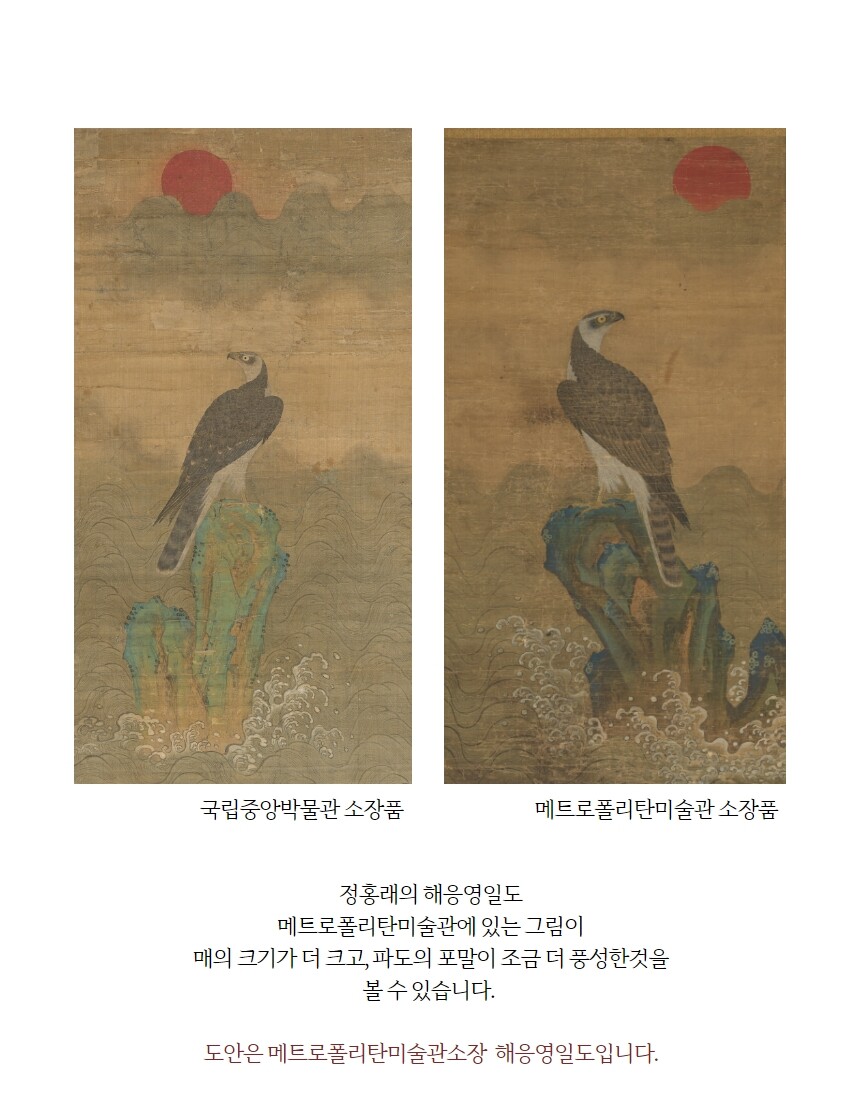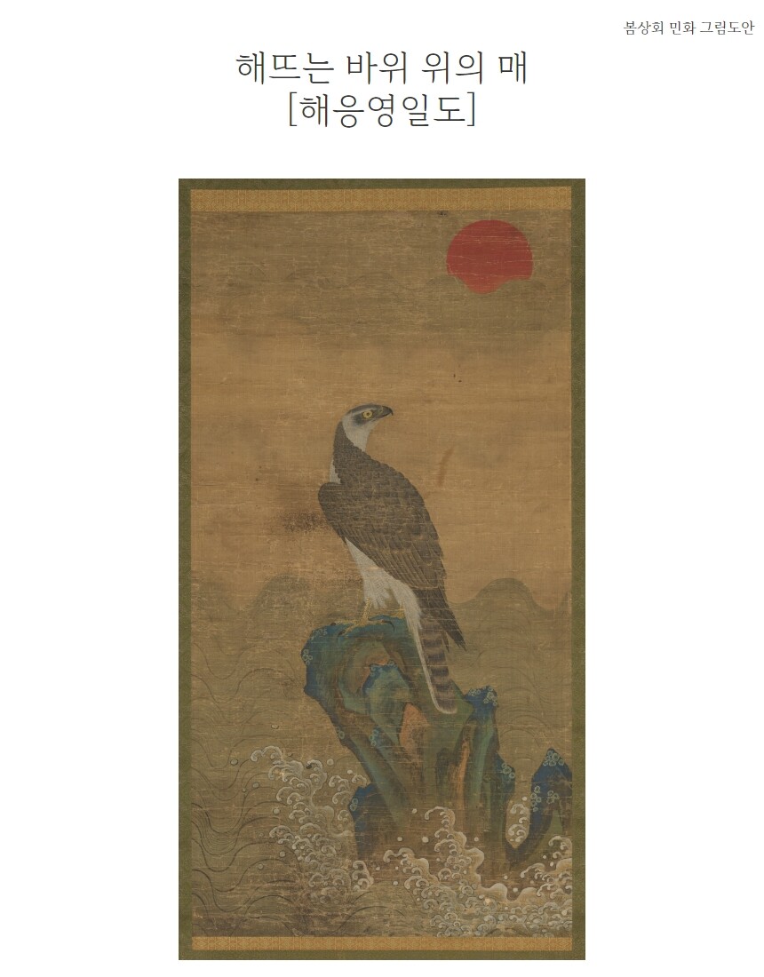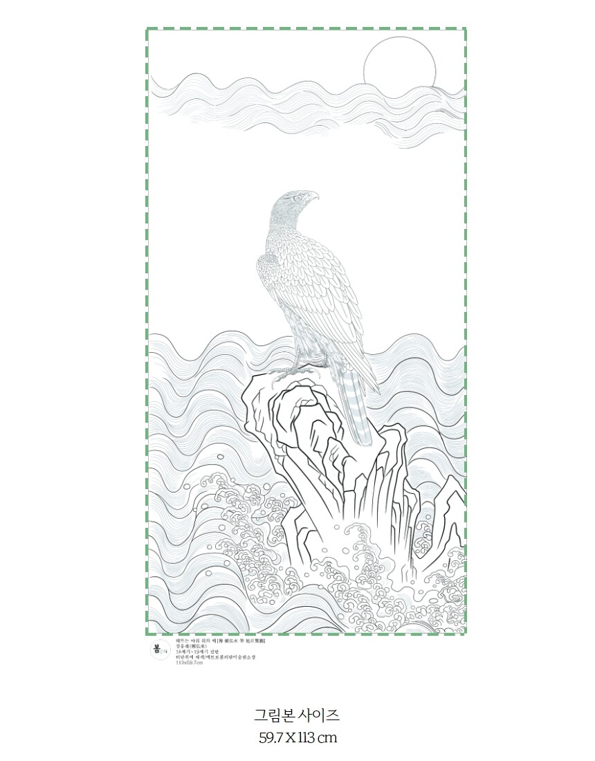 민화 도안 정홍래 해응영일도 해뜨는 바다 위의 매 그림본