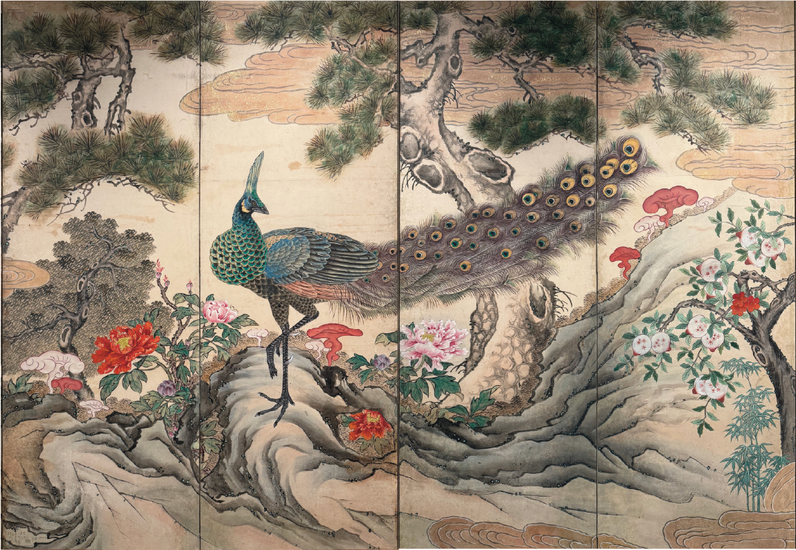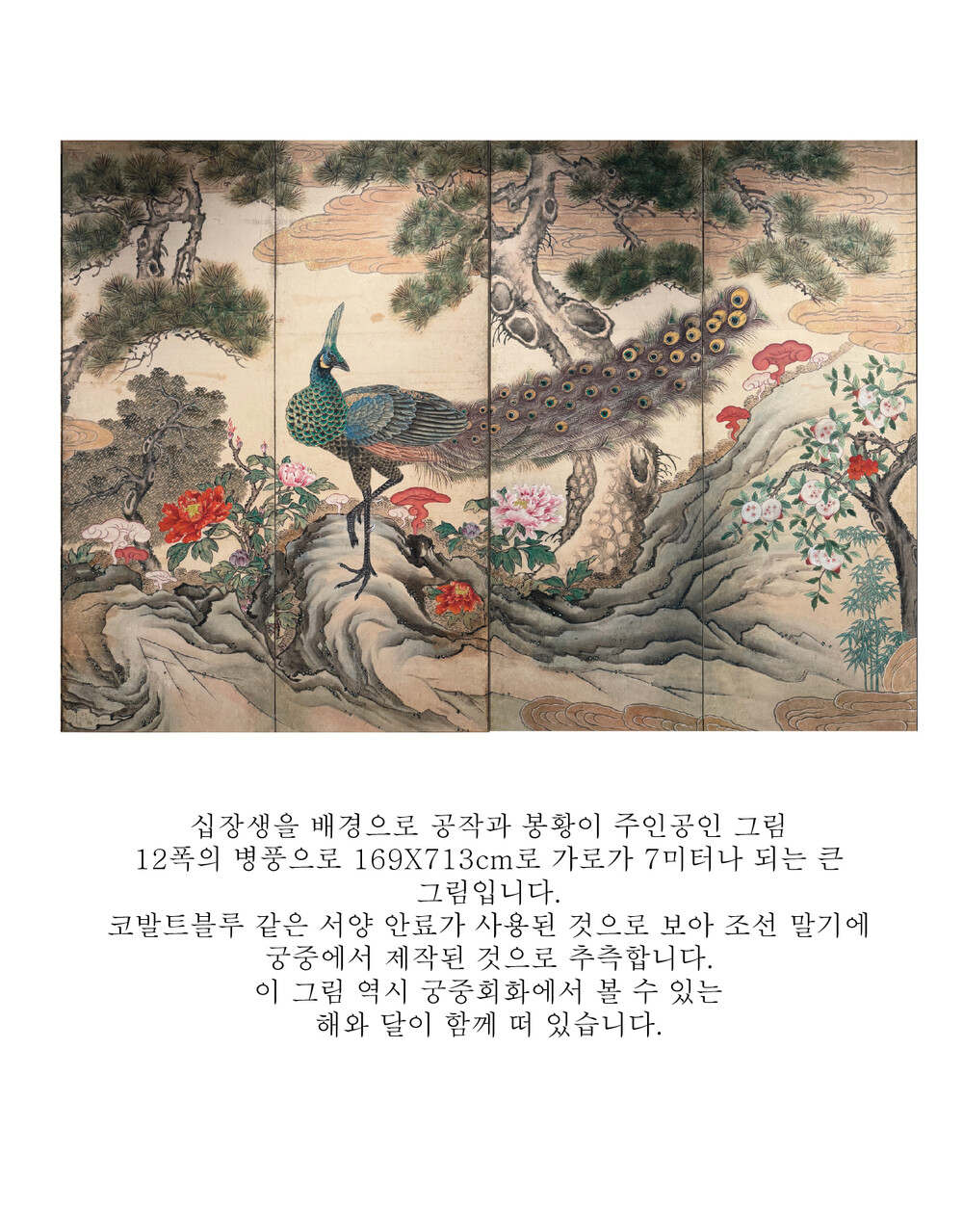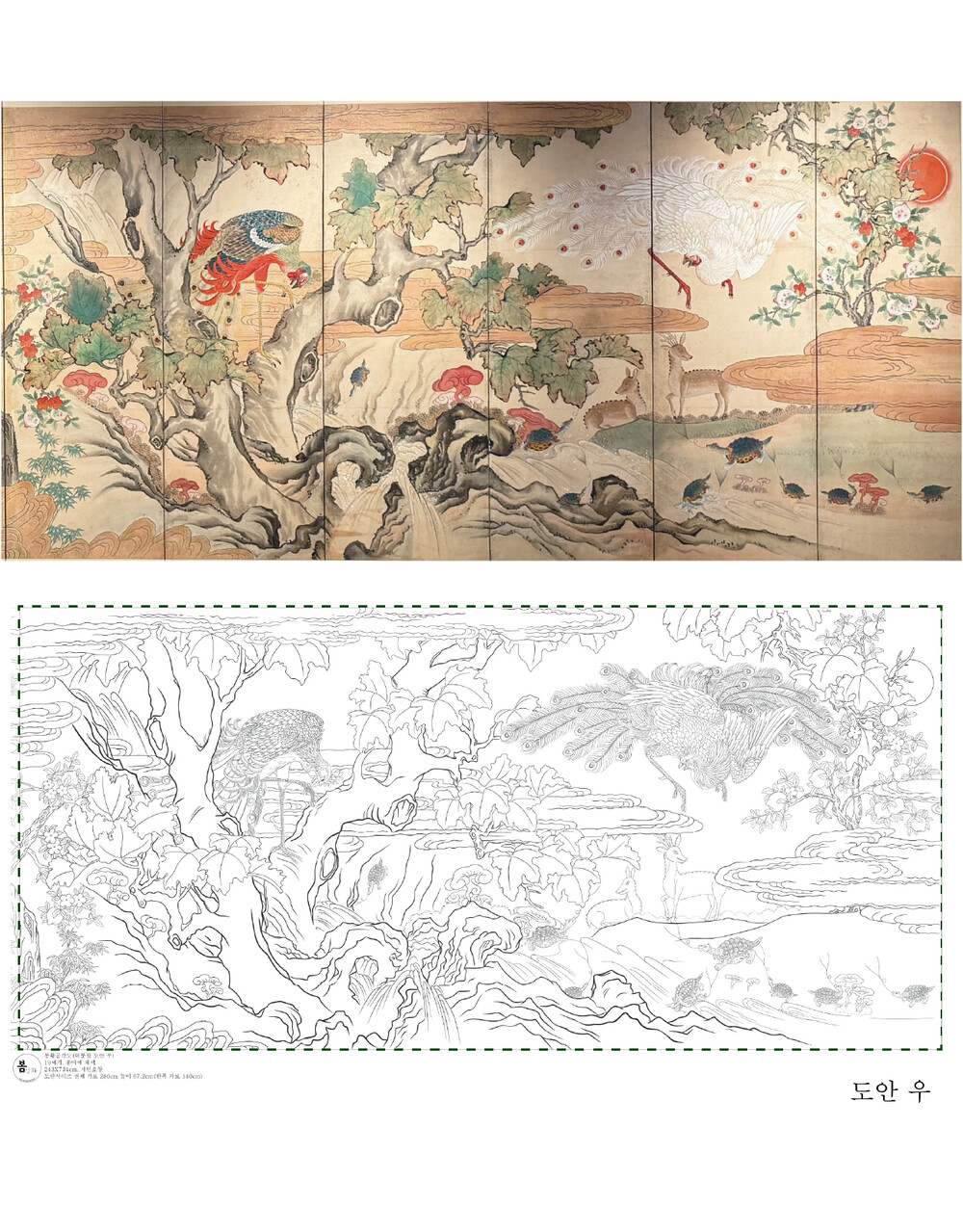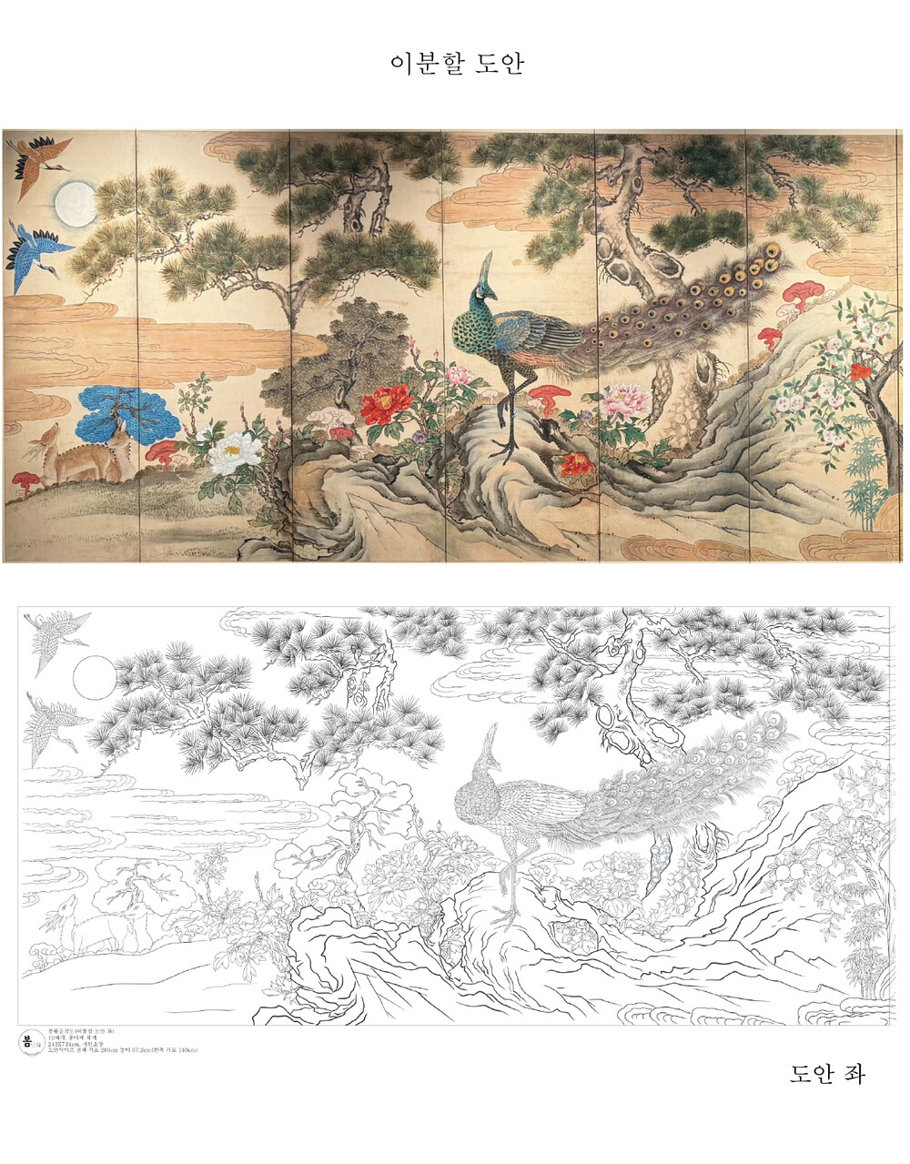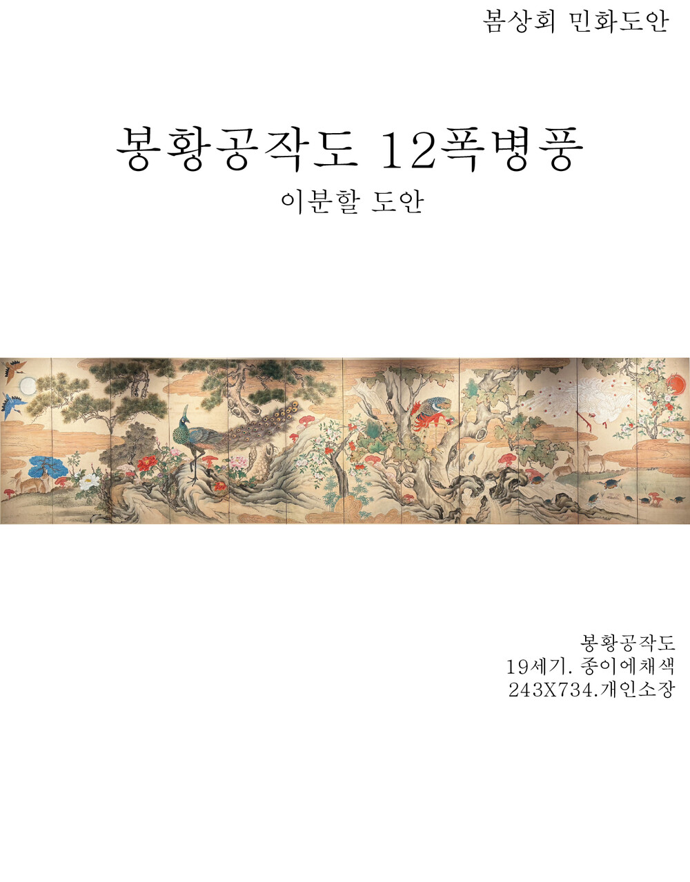 봉황공작도 12폭 병풍 도안[이분할] 봄상회 민화도안