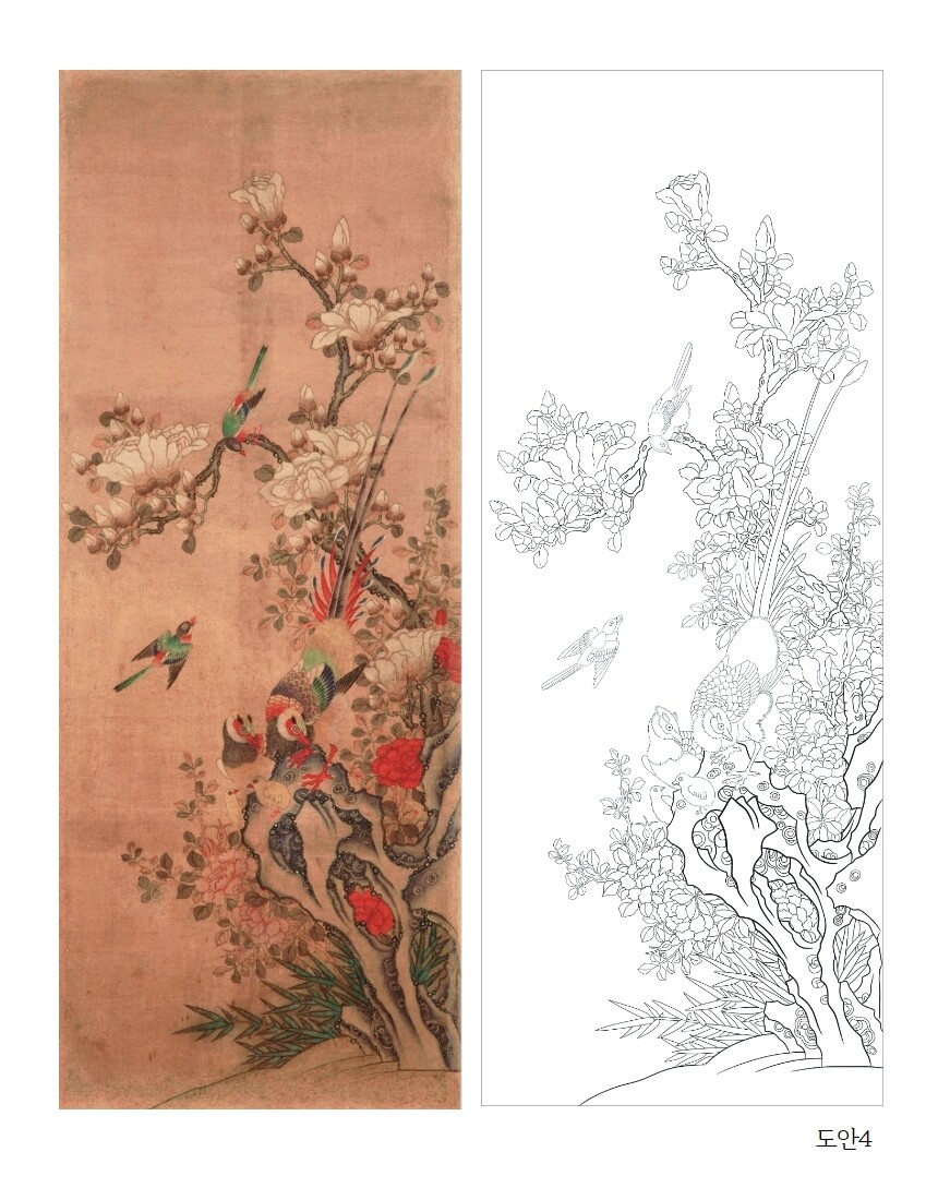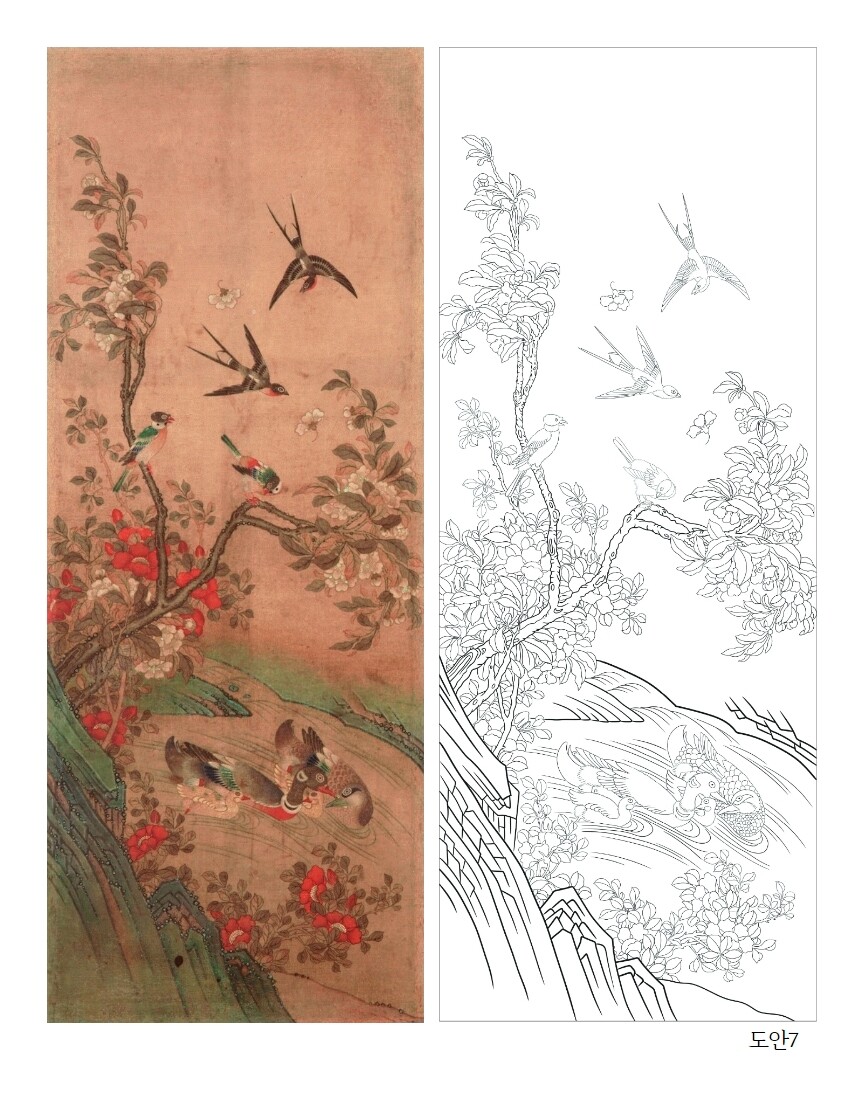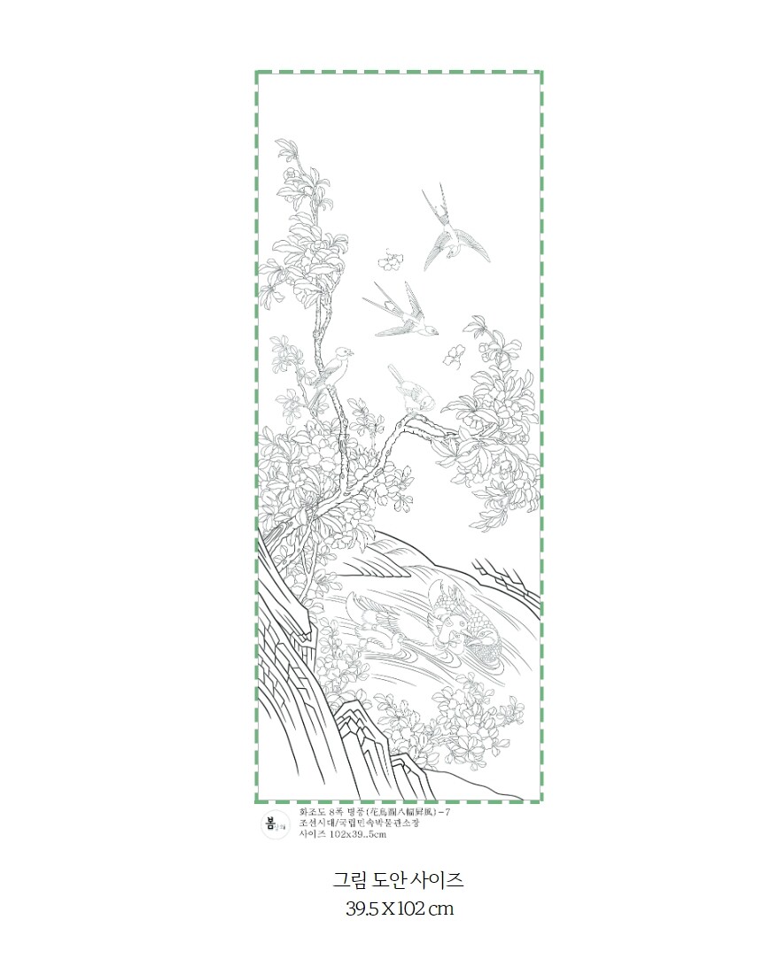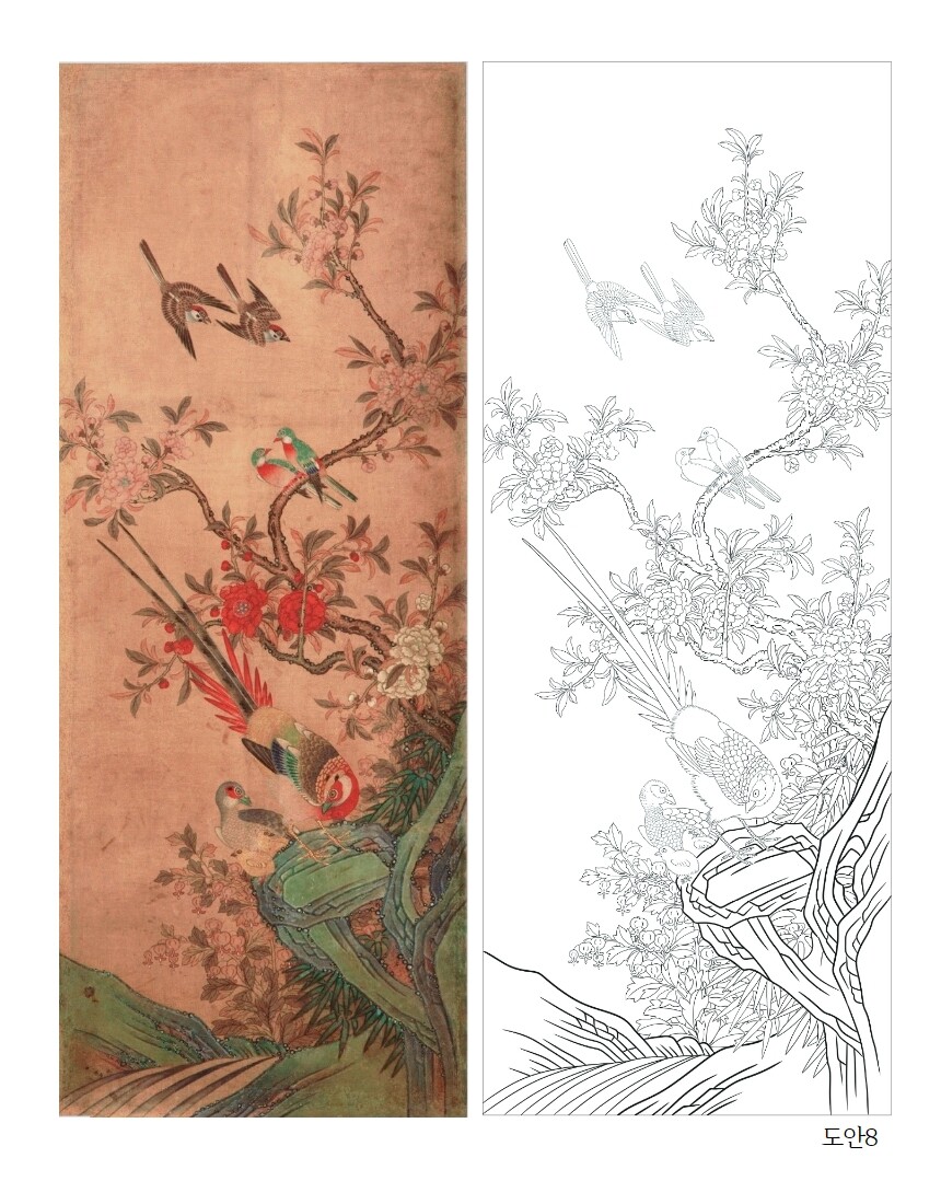 민화 도안 화조도8폭 쌍조도 두쌍의 새 그림본
