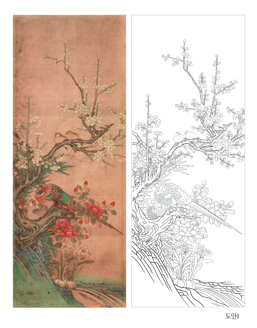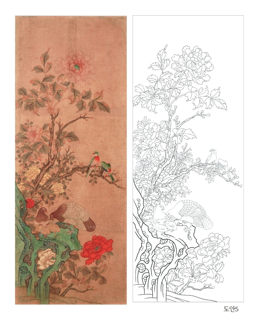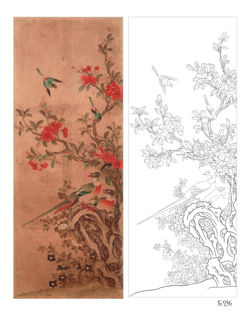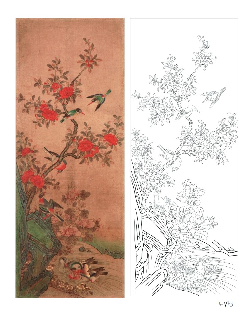 민화 도안 화조도8폭 쌍조도 두쌍의 새 그림본