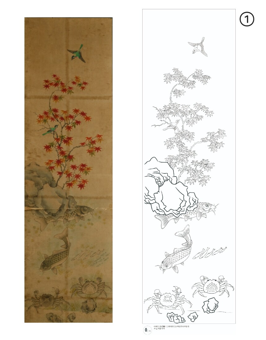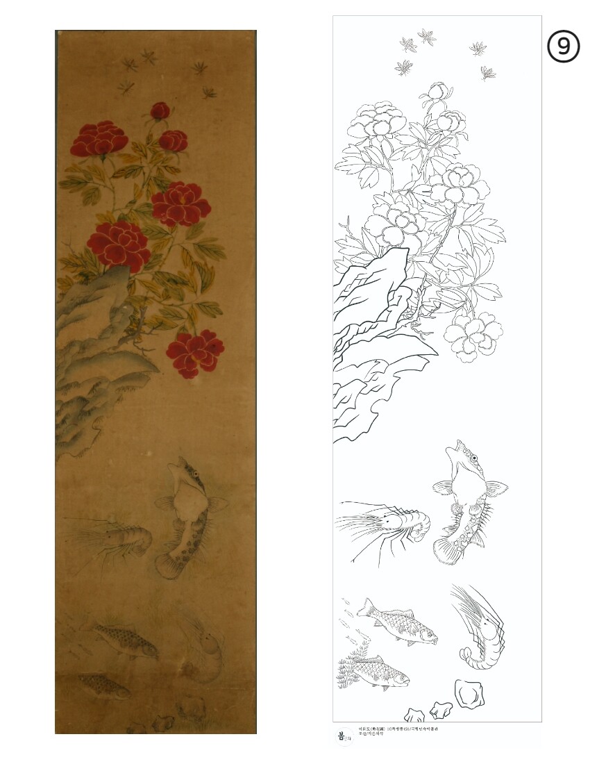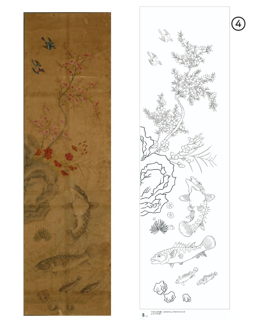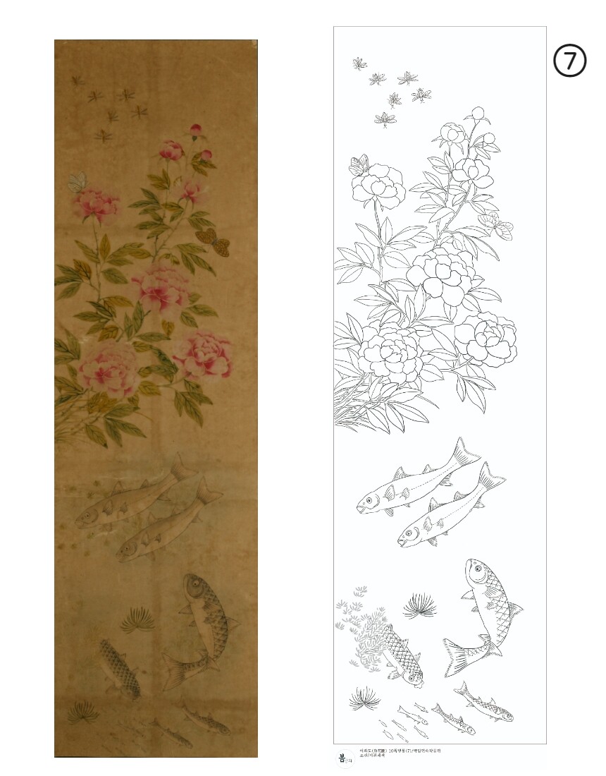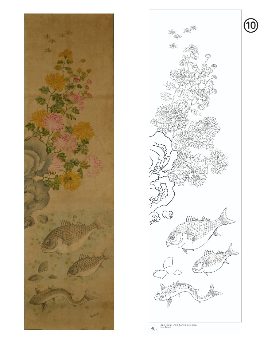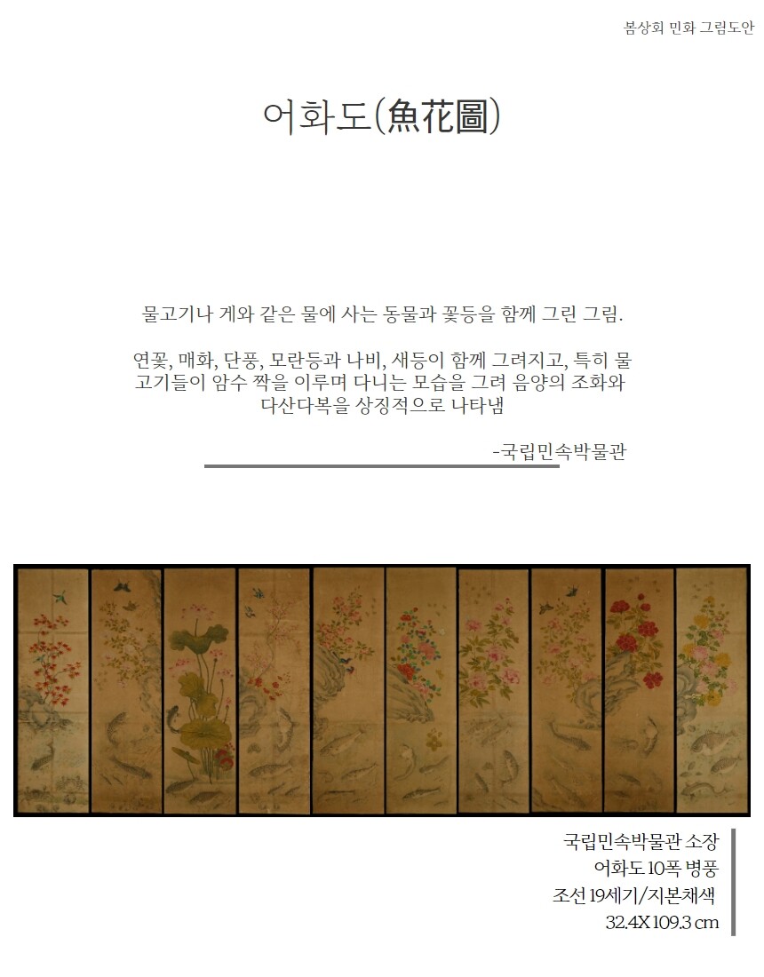 민화 도안 어화도 10폭 병풍