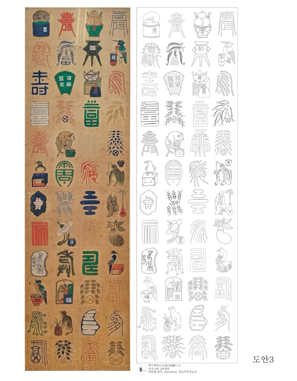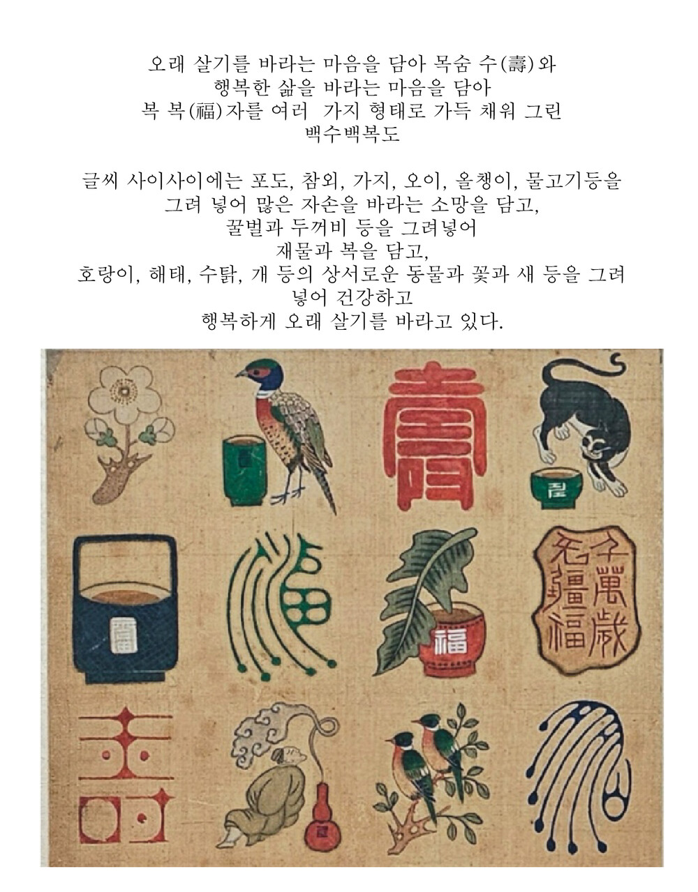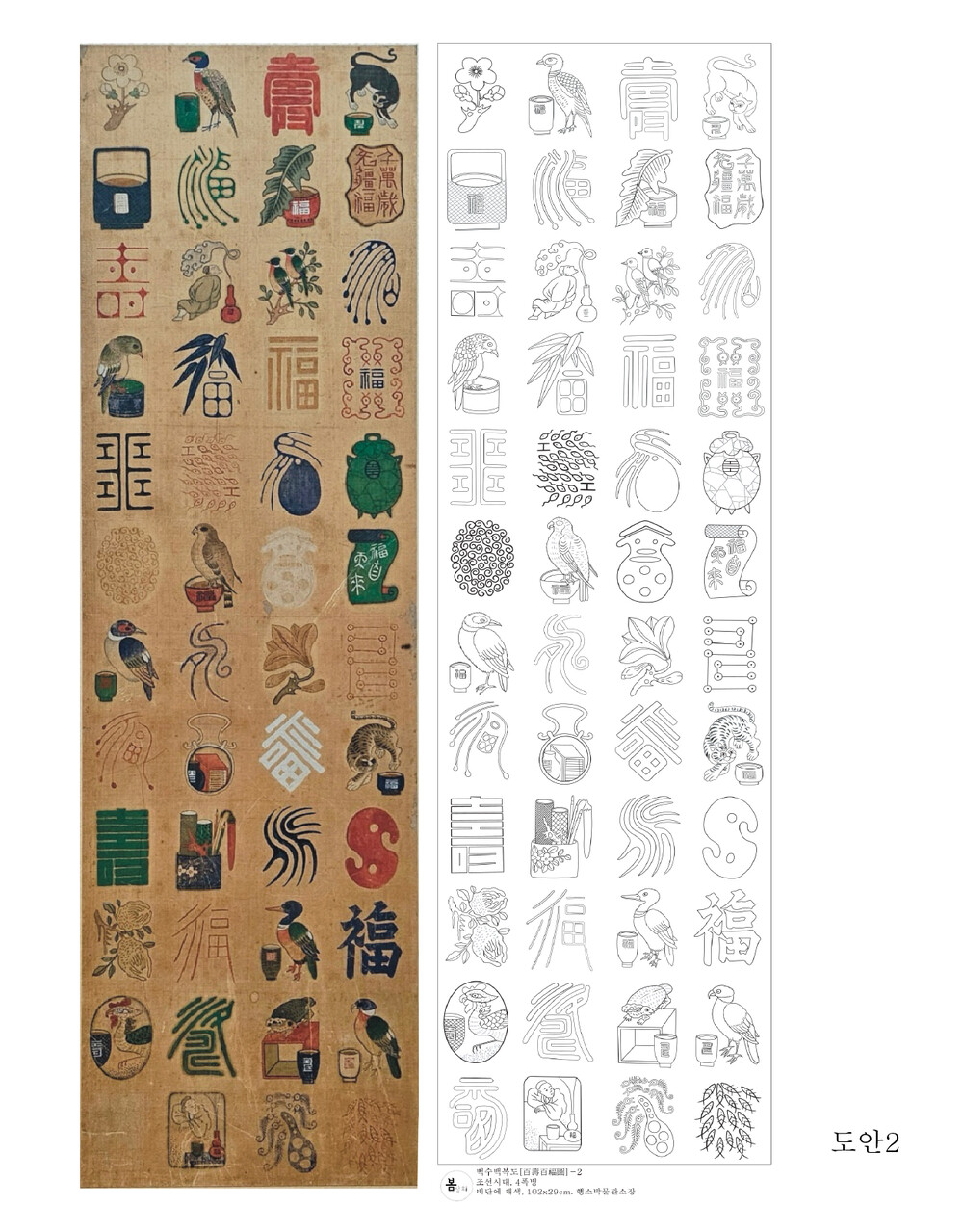 백수백복도 민화 도안 봄상회 그림본