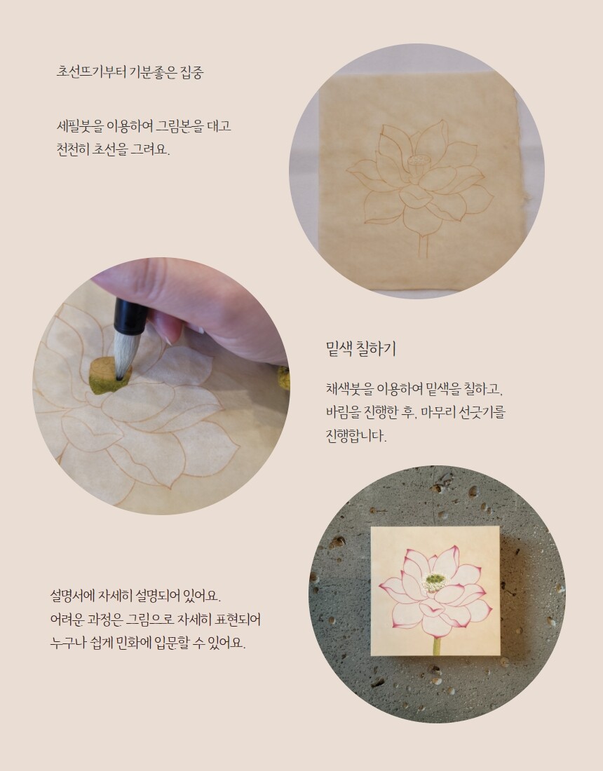 봄상회 민화 그리기 체험 키트 연꽃 DIY