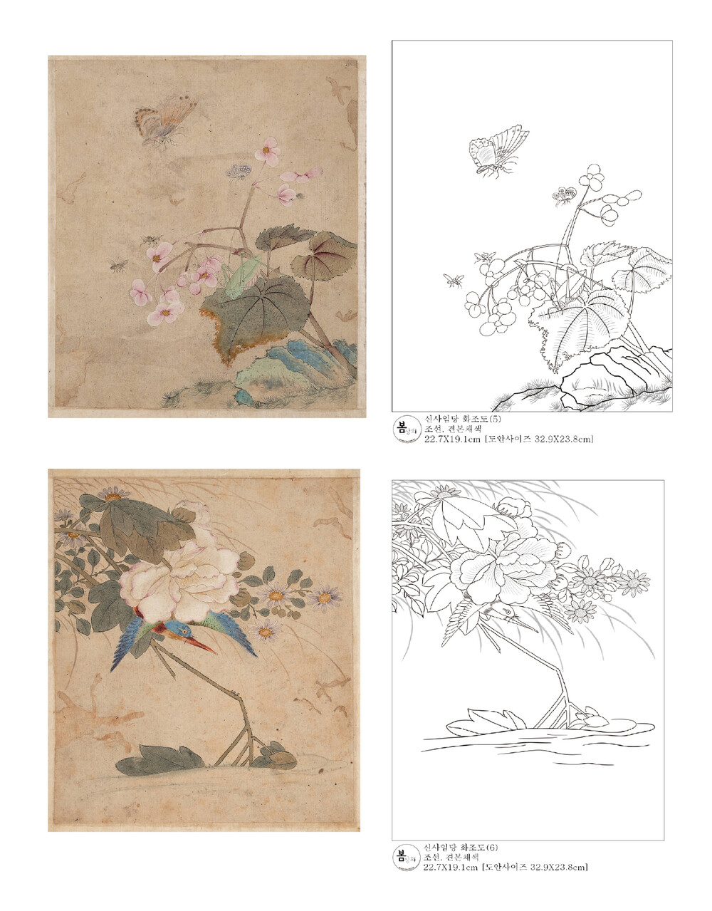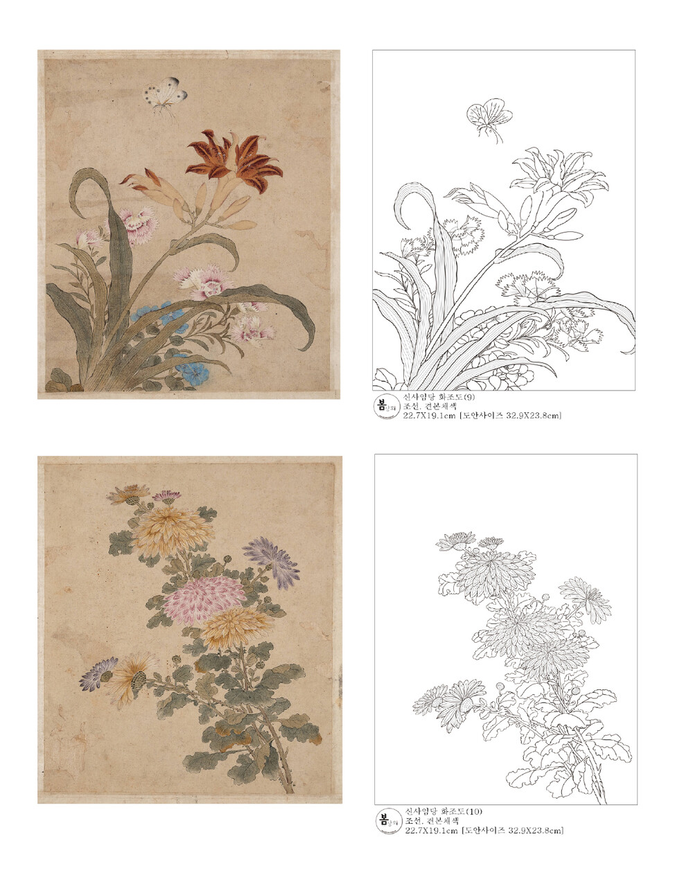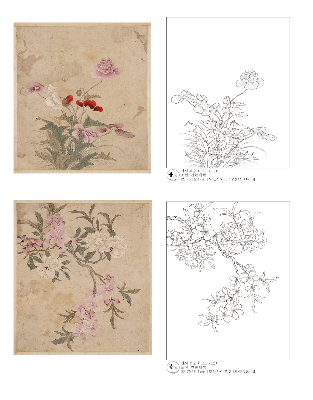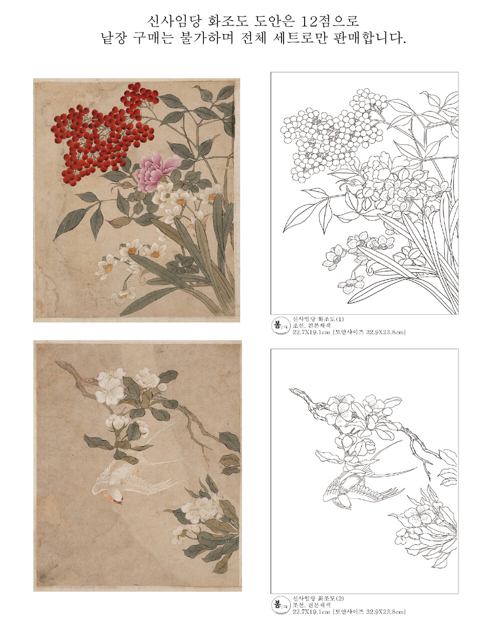 신사임당 화조도 12점 도안 세트 봄상회 민화 도안