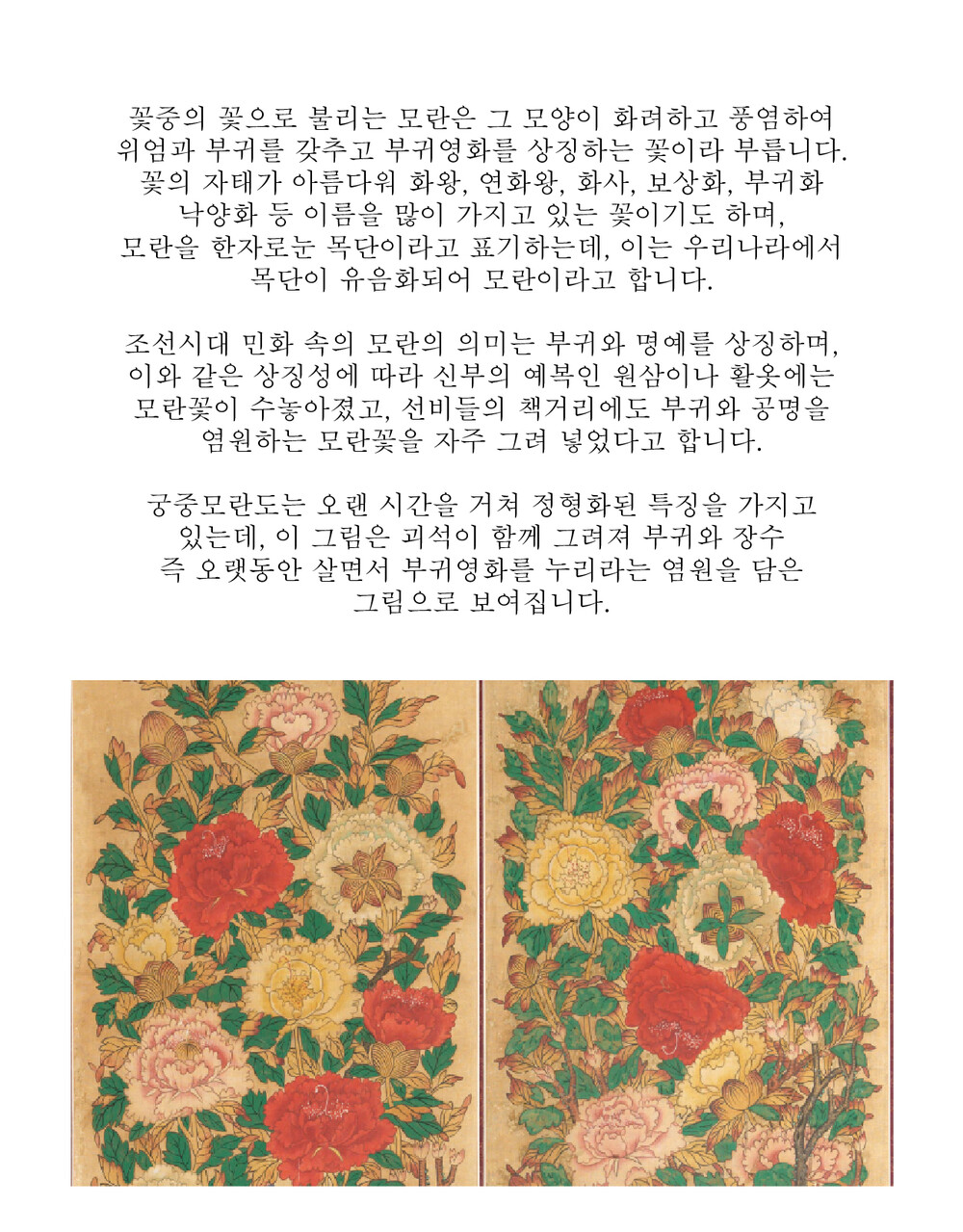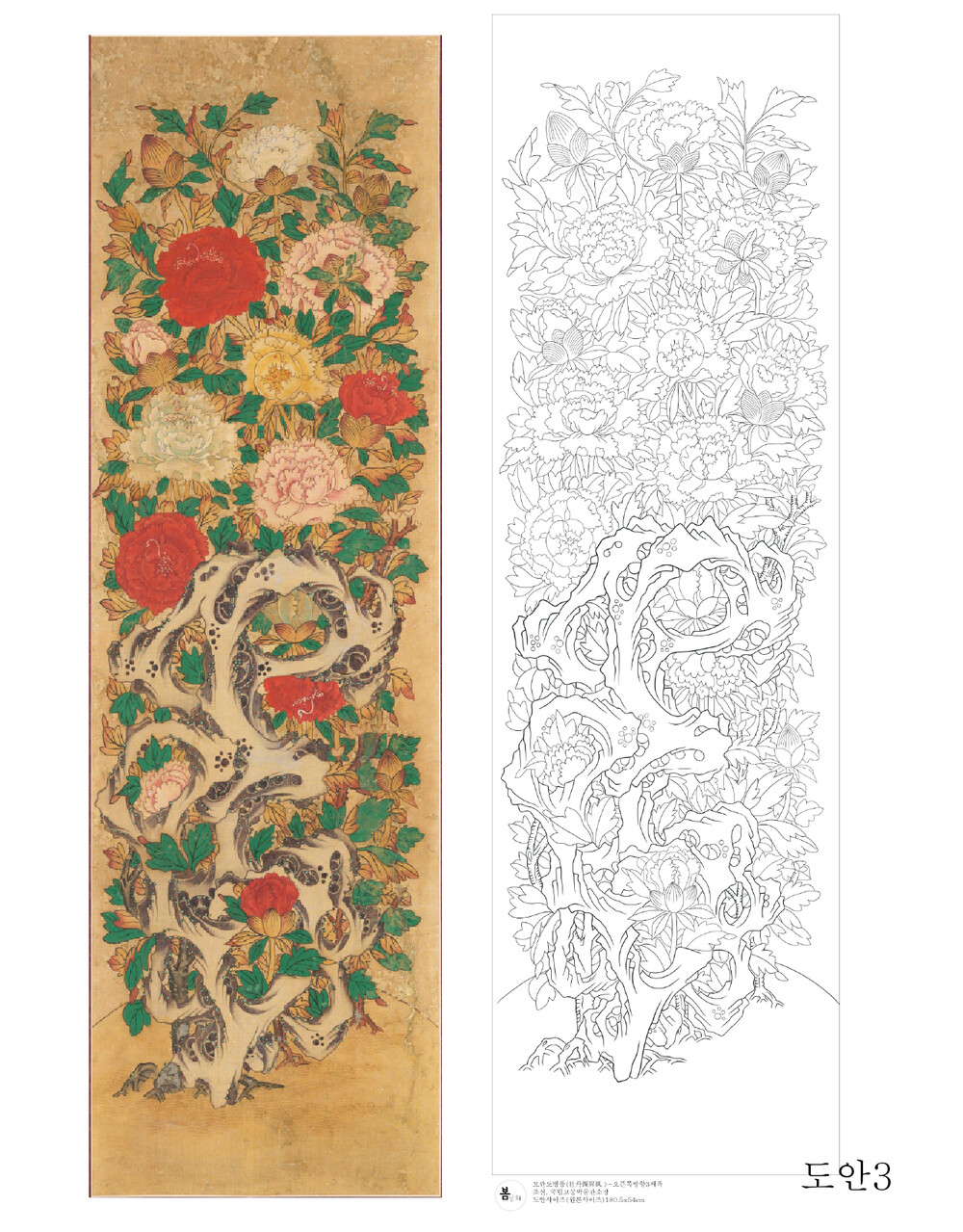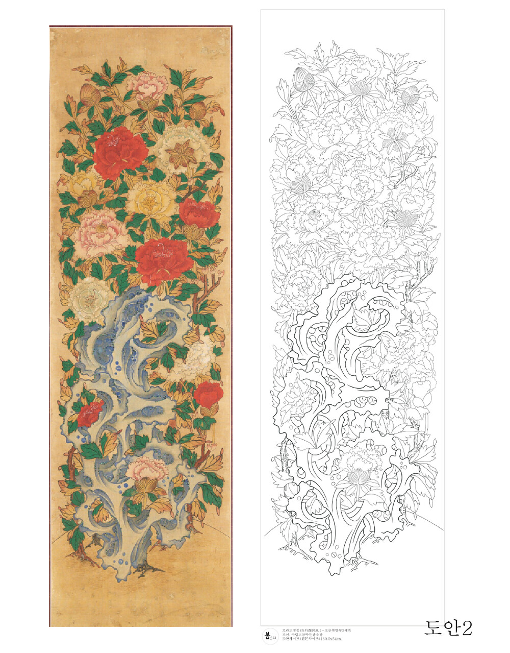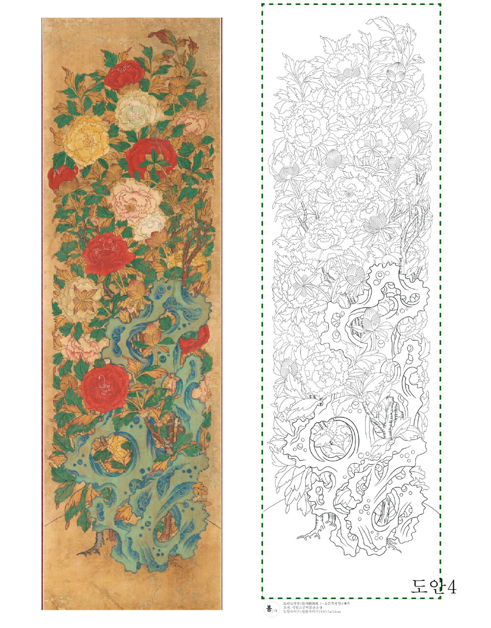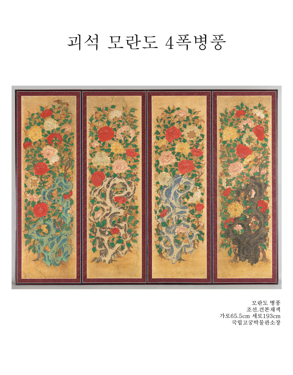 고궁 괴석모란도4폭병풍 민화도안 봄상회 그림본