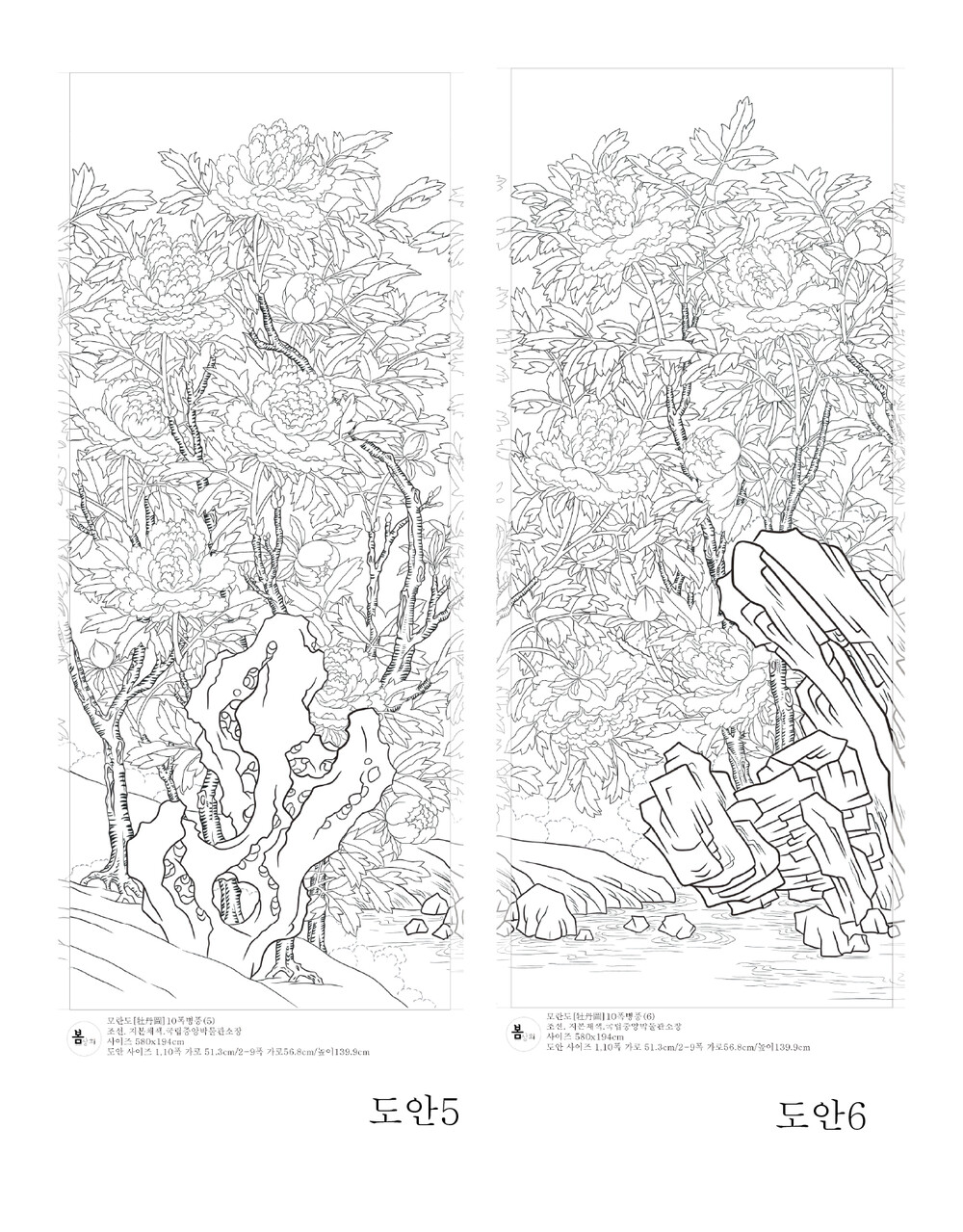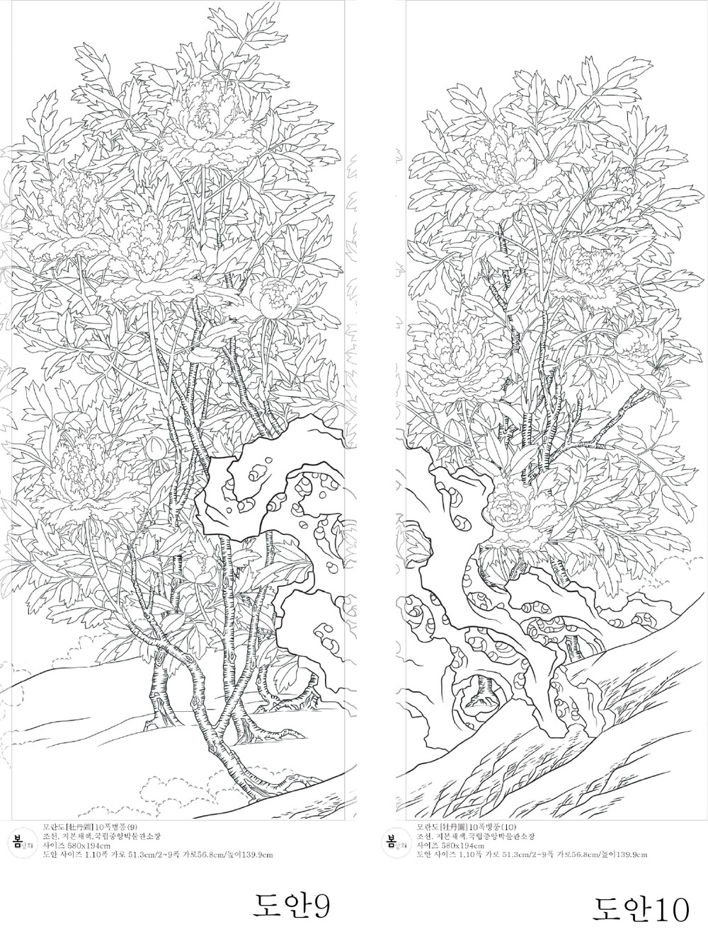 모란도10폭병풍 민화 도안 봄상회 그림본
