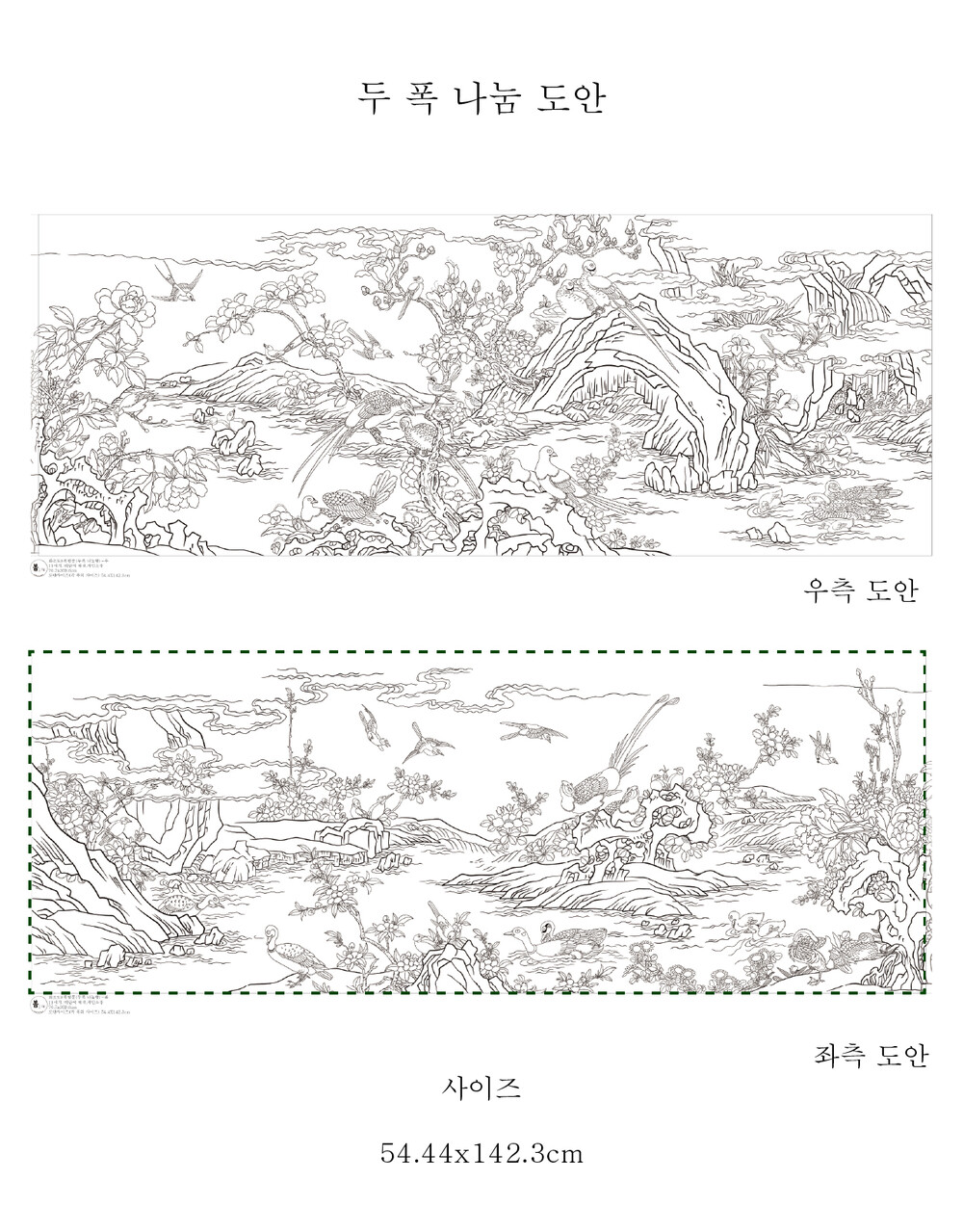 화조도 8폭병풍 일체형 2분할형 민화 도안[궁중장식화풍]봄상회 그림본