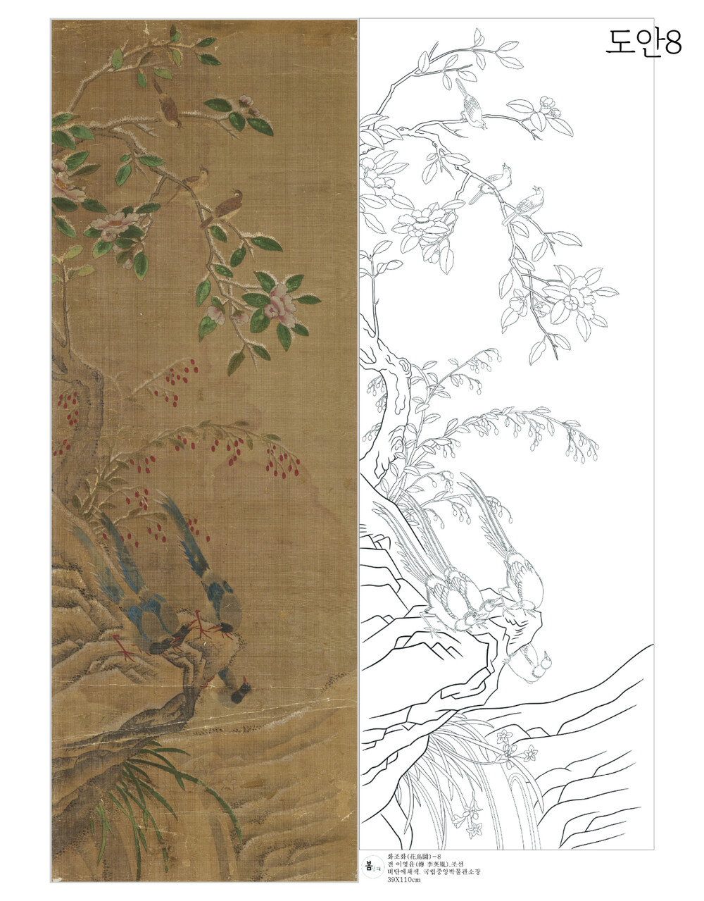 민화 도안 전이영윤 화조화 8폭 봄상회 그림본