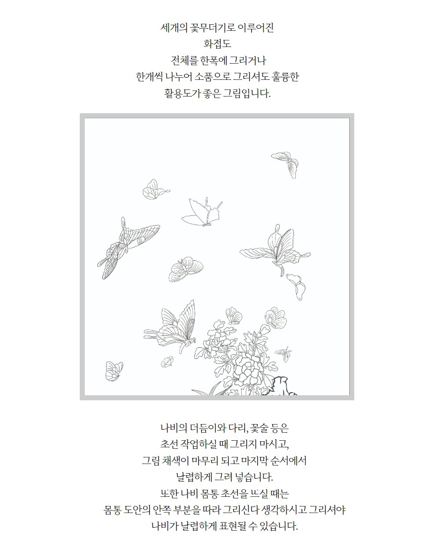 봄상회 민화 그리기 도안 화접도 세개의 꽃무더기