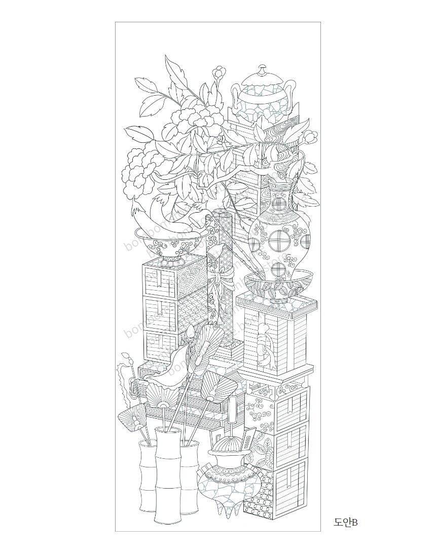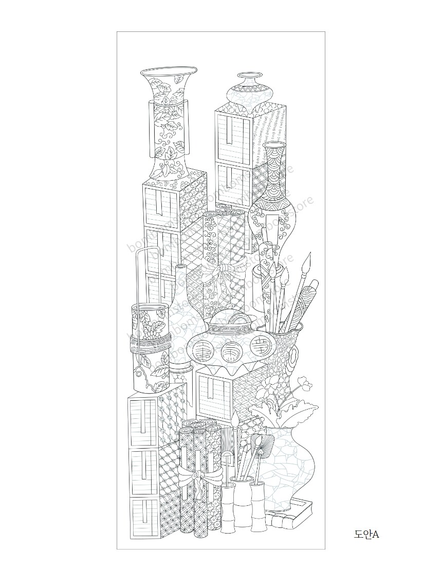 민화 그리기 그림 도안 향로가 있는 책거리 그림본