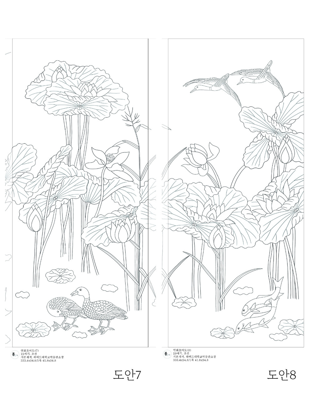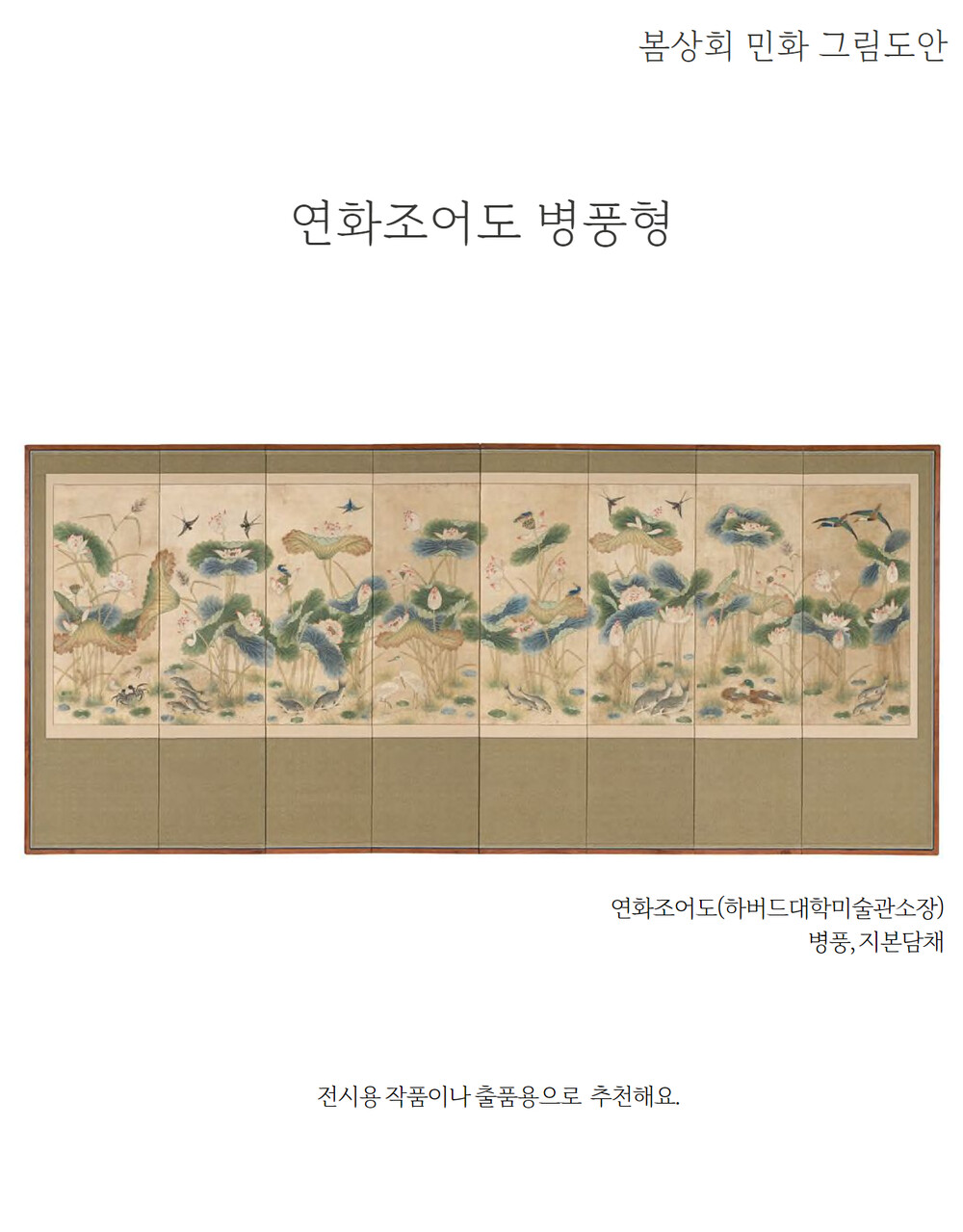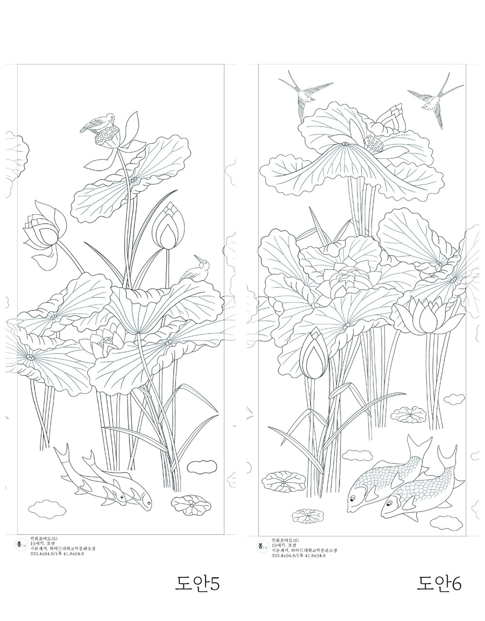 민화 그리기 그림 도안 연화조어도 병풍형 8폭 하버드미술관 소장
