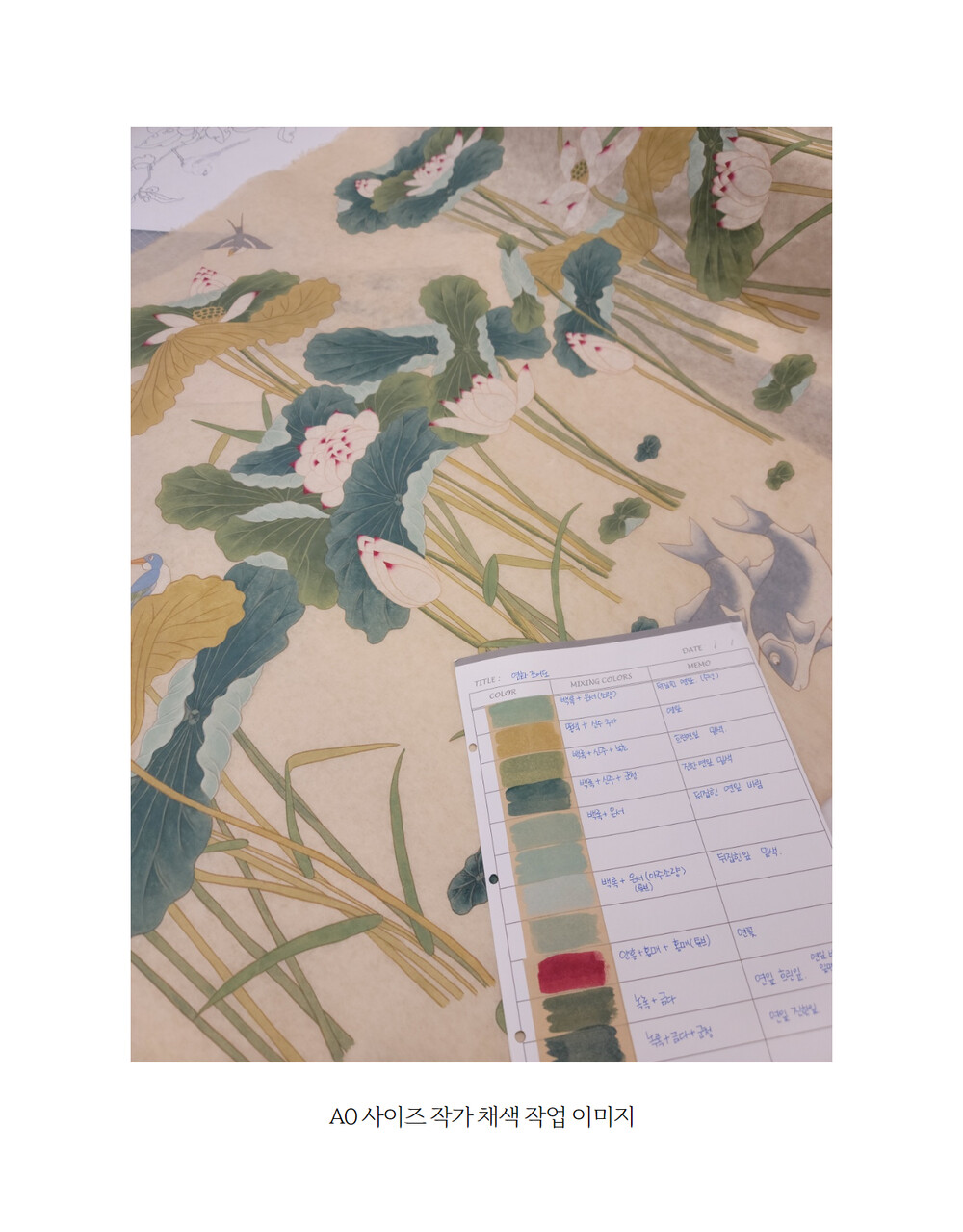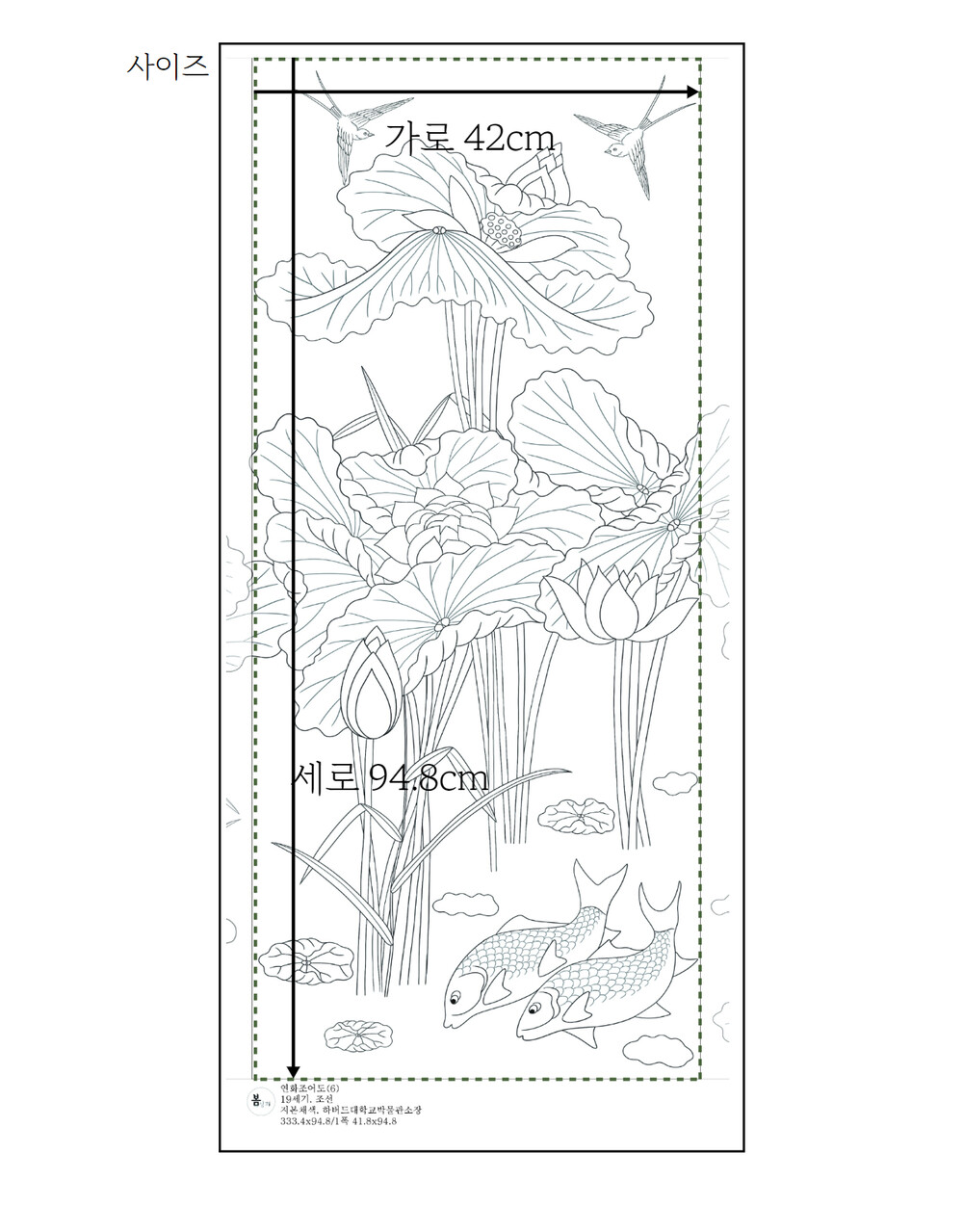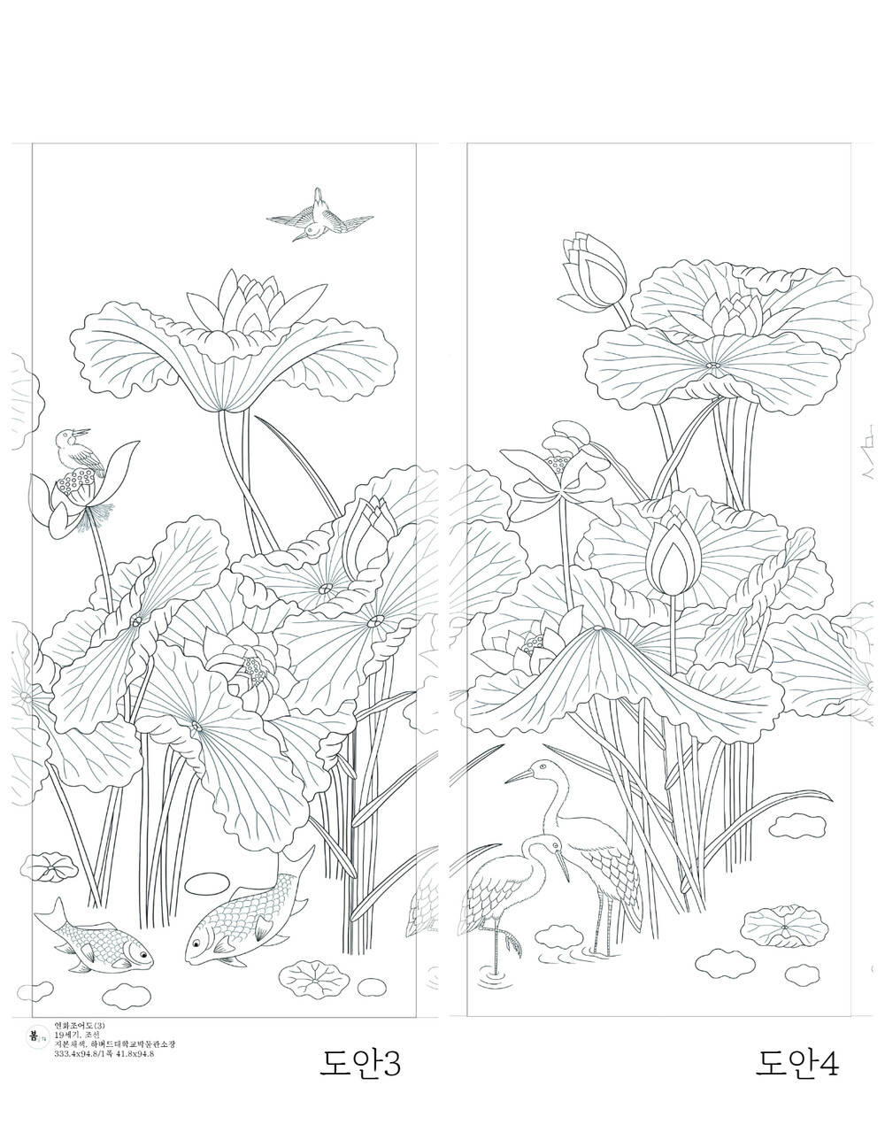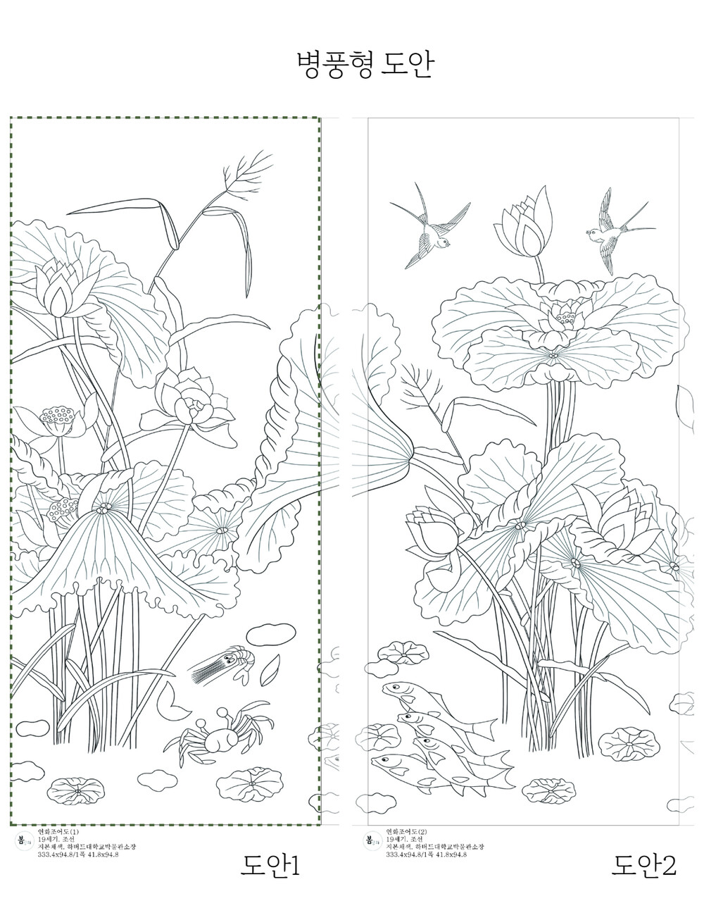 민화 그리기 그림 도안 연화조어도 병풍형 8폭 하버드미술관 소장
