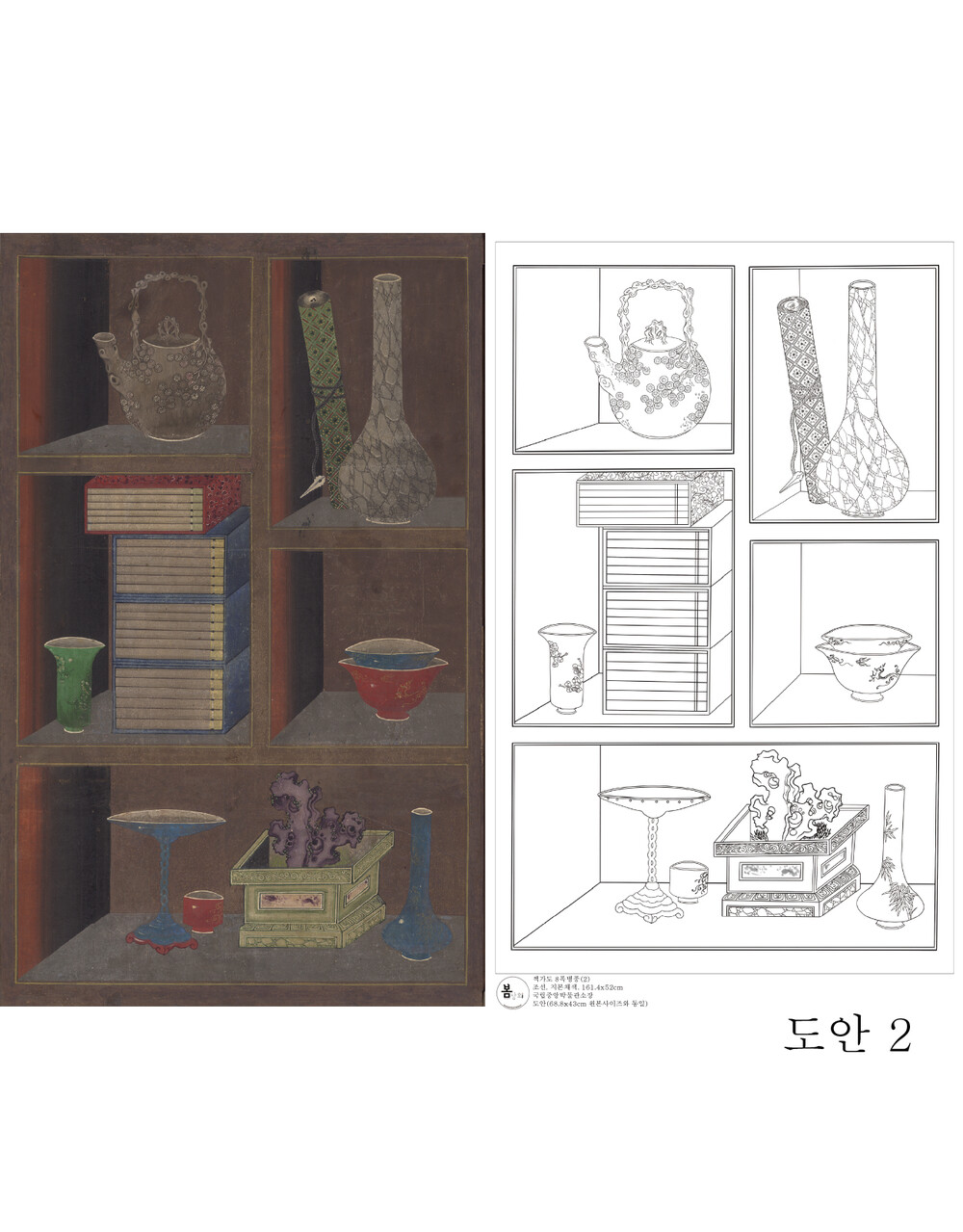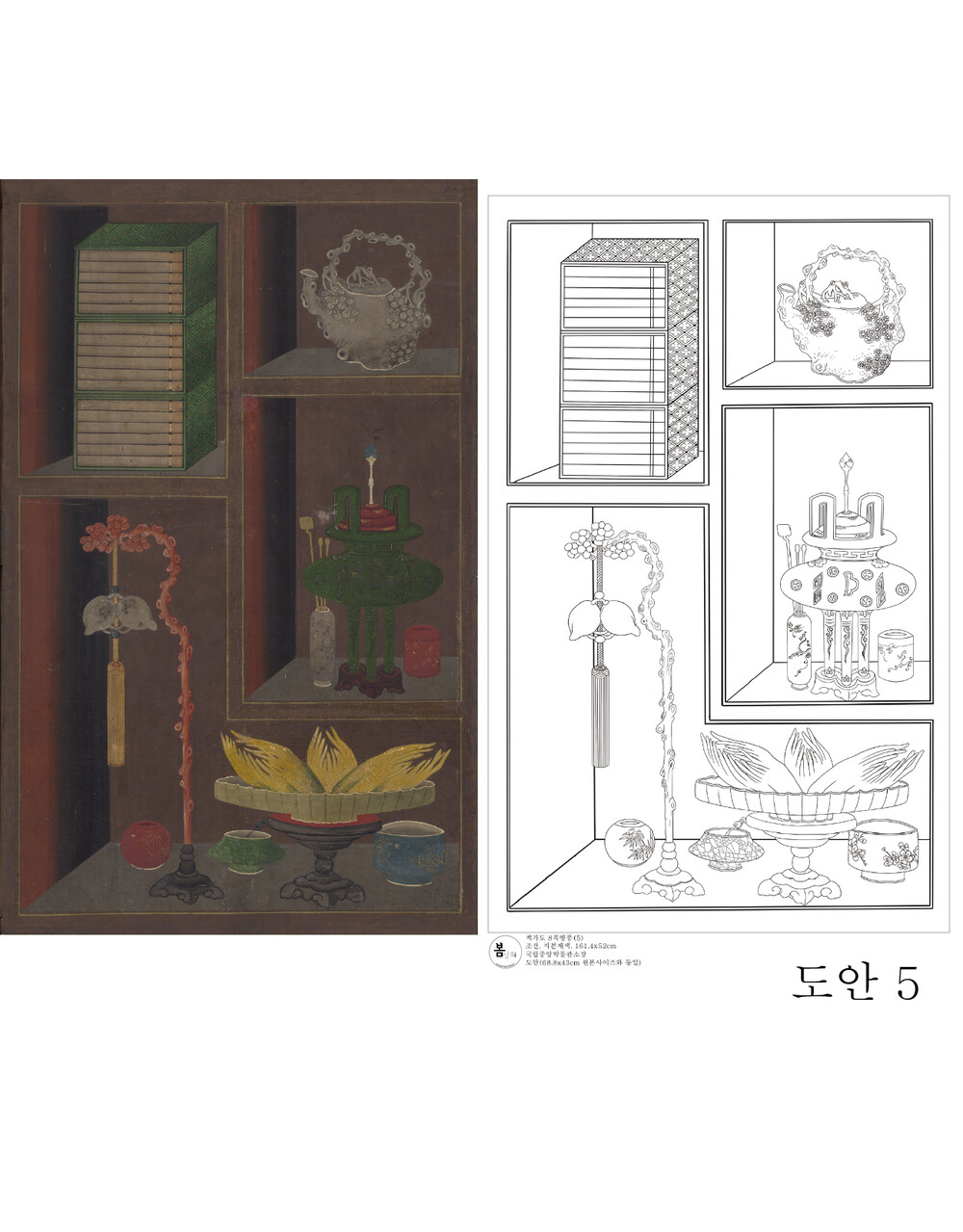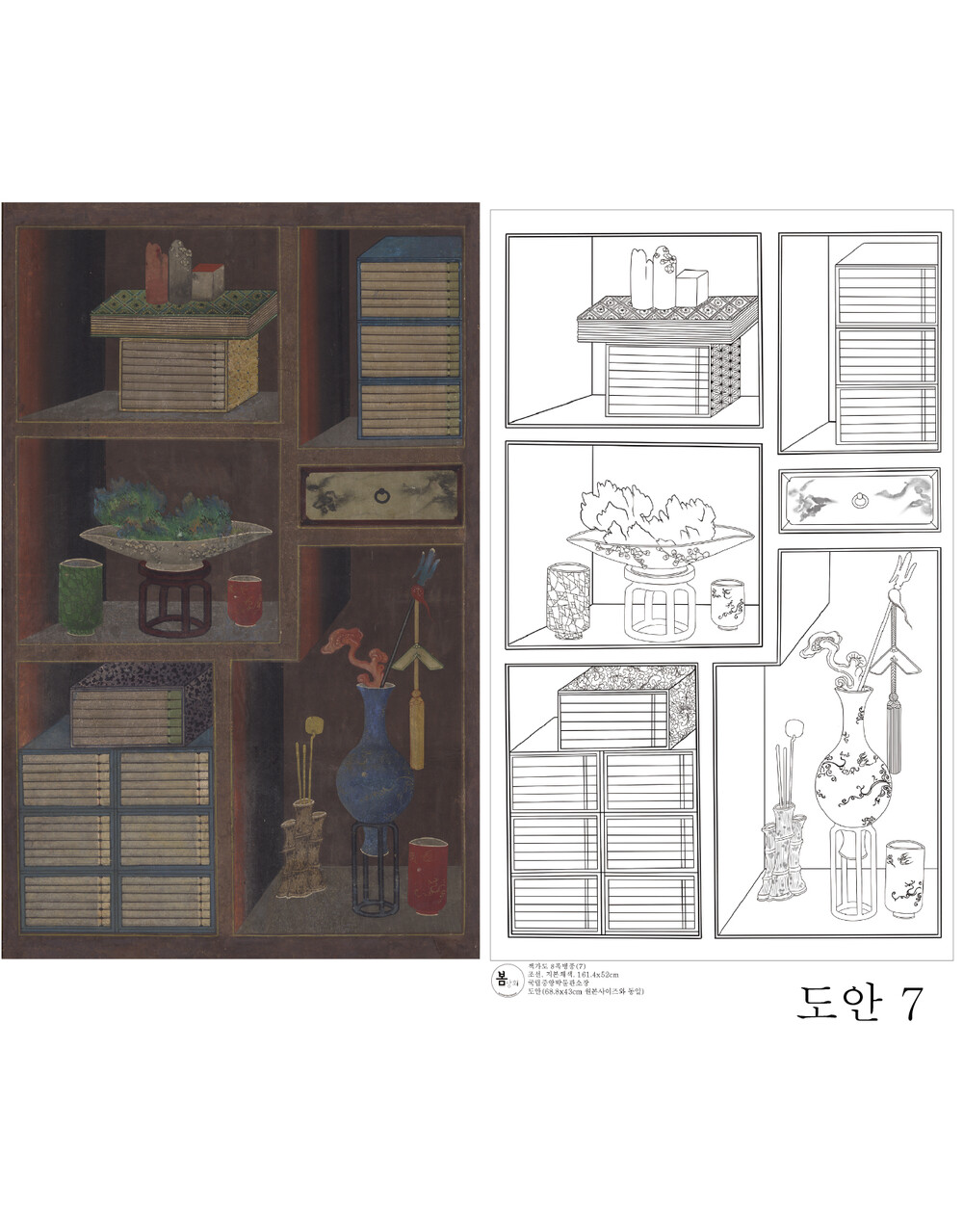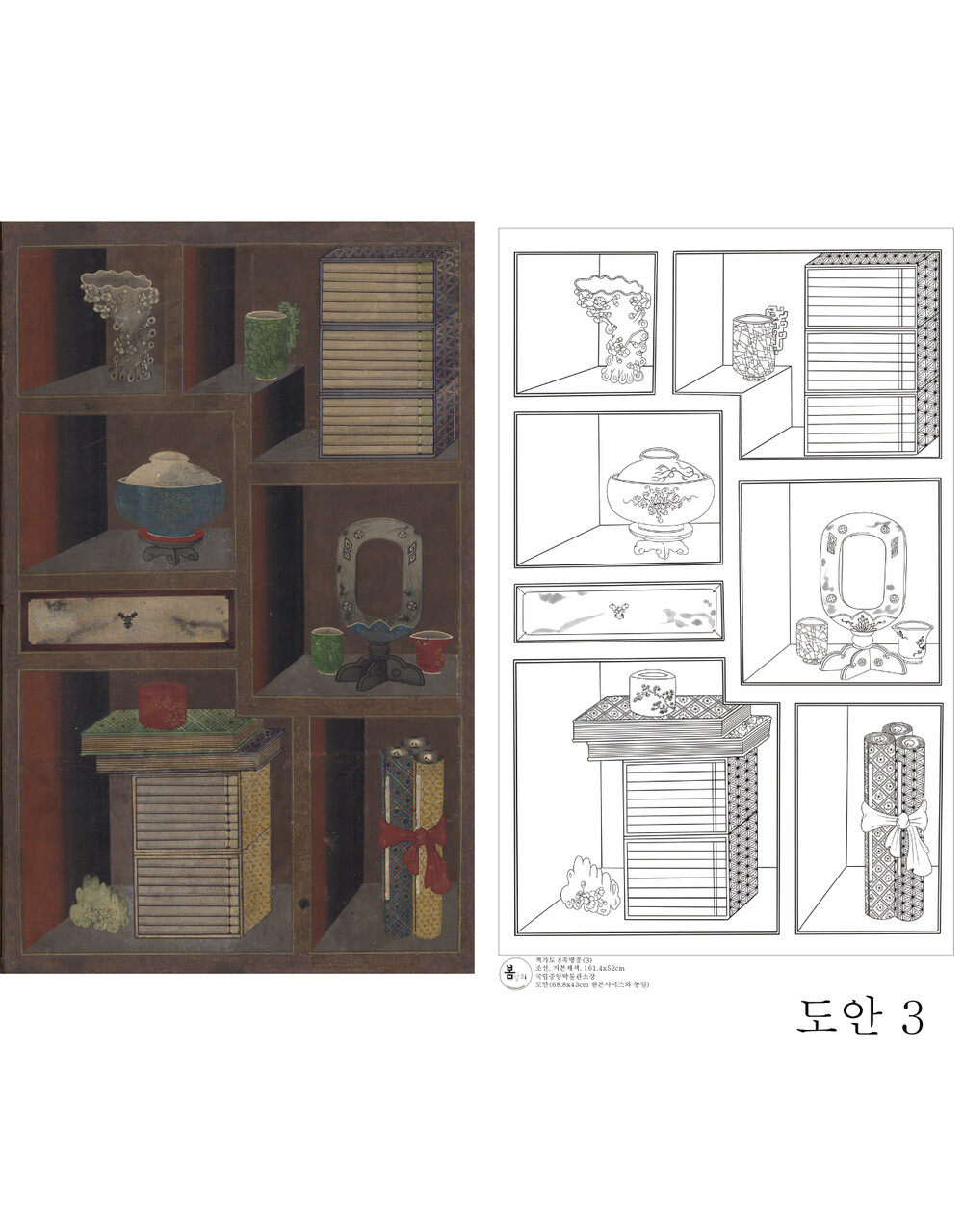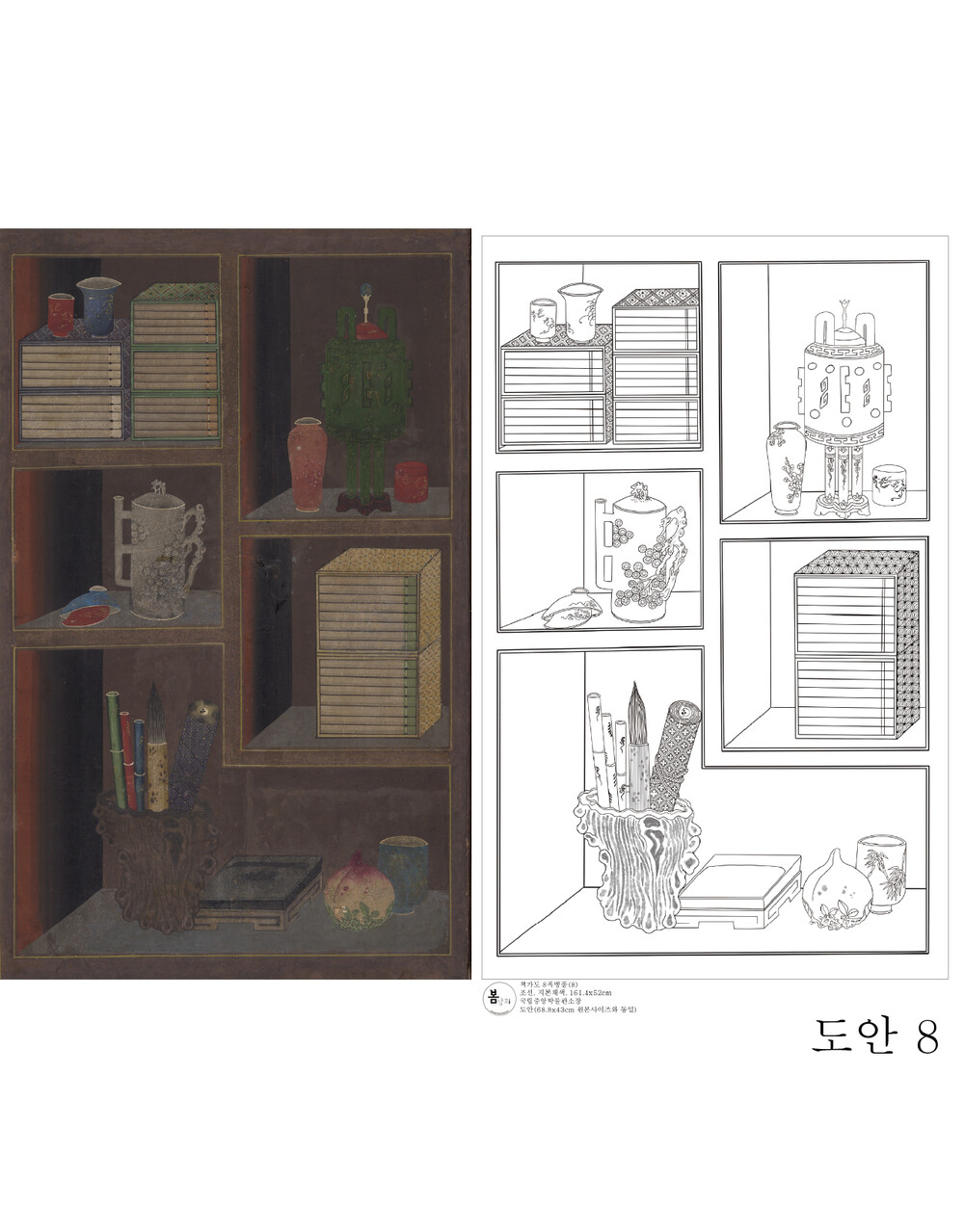 책가도 8폭병풍 도안 [국립중앙박물관소장] 봄상회 그림본