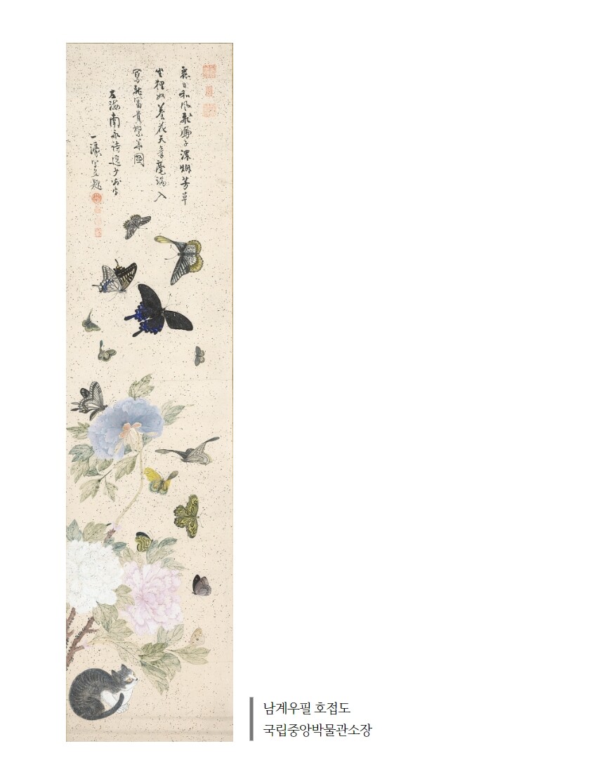 민화 도안 남계우필 고양이가 있는 호접도